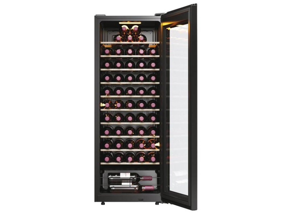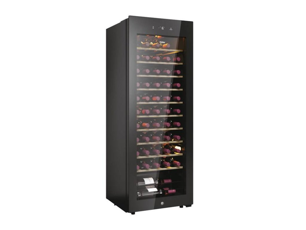 Vinotéka Haier HWS58GGH1, energetická třída G, pro 58 lahví, vnitřní objem 150 l, 1 zóna chlazení, 10 polic, ve výbavě dětský zámek a automatické odmrazování, displej, osvětlení a UV filtr, digitální ovládání, nastavitelná teplota od 5 do 20 °C, hlučnost 37 dB, pravé otevírání, rozměry 128 × 47,5 × 45,6 cm (V׊×H), hmotnost 39 kg, černá barva Poškozený přepravní obal (krabice, polystyren či plastová folie). Jedná se o nový, plně funkční výrobek, na který se vztahuje standardní, minimálně dvouletá, záruka.