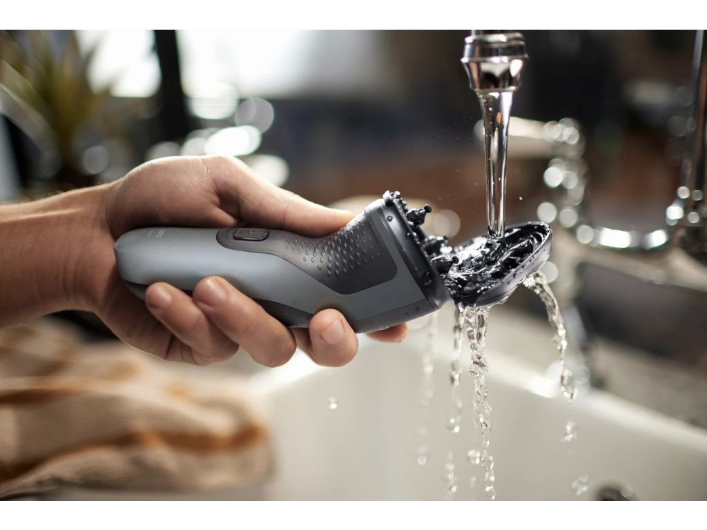 Strojek umožňuje suché i mokré holení, takže jej můžete používat s gelem nebo pěnou, případně i ve sprše. Voděodolné provedení zároveň usnadňuje údržbu – po holení jej jednoduše opláchnete pod tekoucí vodou.