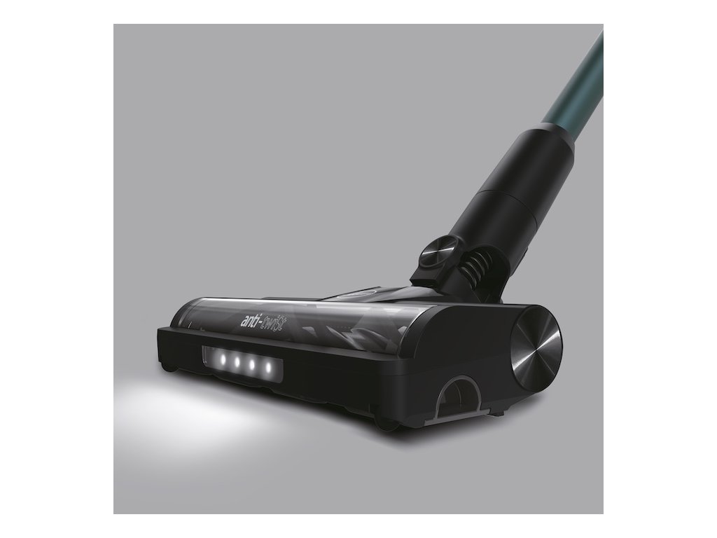 Tento model disponuje bezkomutátorovým motorem o výkonu 165 W, cyklónovým separačním systémem a nádobou na prach o objemu 0,7 l. Nabízí až tři režimy vysávání – standardní, turbo a ruční – a je vybaven technologií ANTI-TWIST™ i LED osvětlením hlavice. Praktická parkovací pozice Quick Park&Go a snadno vyjímatelná baterie s indikátorem zajišťují pohodlné používání.