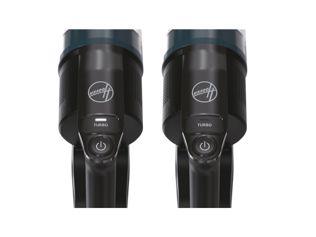 Až 30 minut autonomie, vyjímatelná baterie pro nabíjení kdekoliv Lithium-iontová baterie 14,8 V vám poskytne provozní dobu až 30 minut ve standardním režimu pro všechny povrchy s hlavní motorizovanou hubicí. Můžete zvolit Turbo režim (12 min) pro extra sací výkon a náročné čištění. V ruční verzi ve standardním režimu nabízí baterie až 45 minut provozu. Snadno vyjímatelnou baterii navíc lze nabíjet přímo ve vysavači nebo samostatně pomocí nabíječky, která je součástí balení. Baterie je vybavena LED kontrolkami, které vás upozorní, kdy je třeba produkt nabít a naopak kdy je připraven k použití.