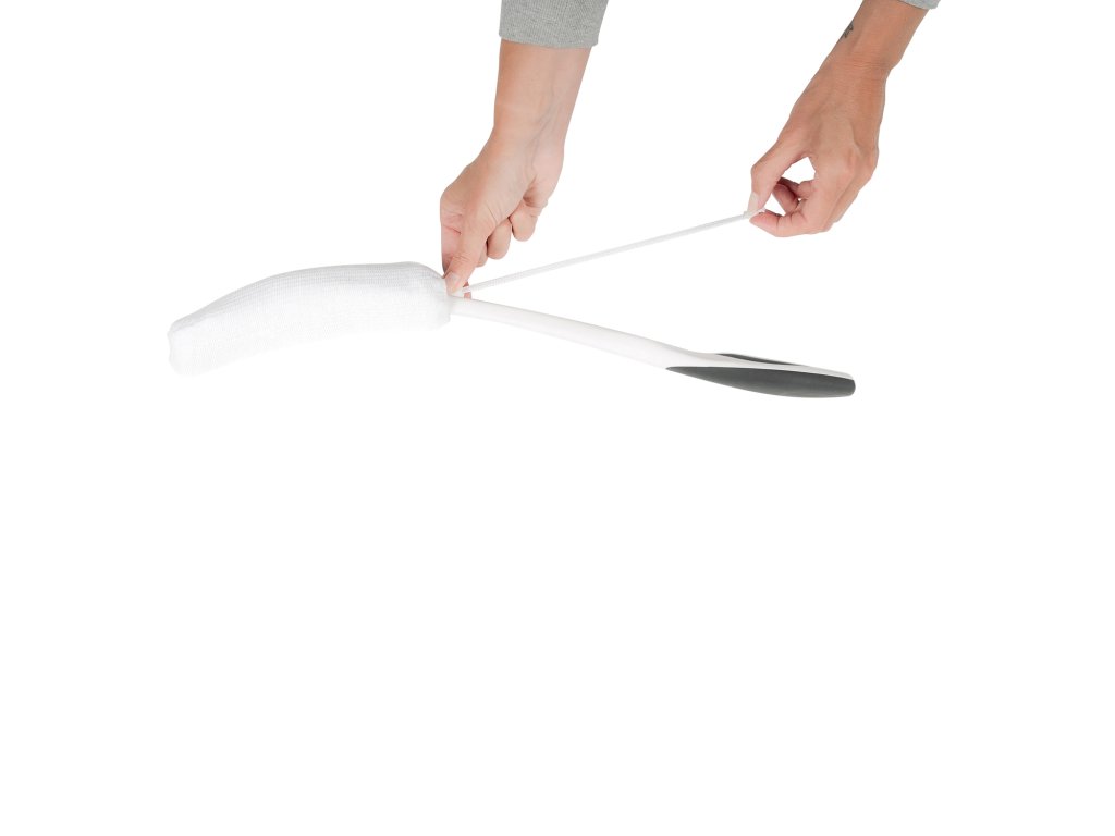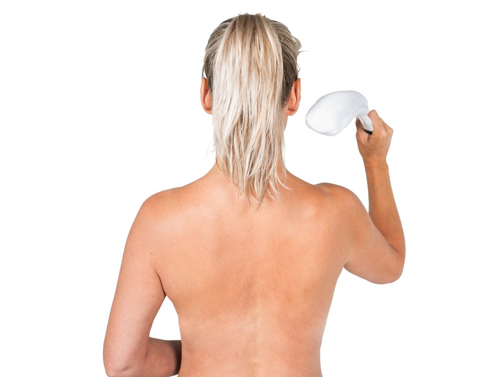 Ergonomicky tvarovaná mycí houbička s prodlouženou rukojetí vám pomůže snadno aplikovat sprchový gel na obtížně přístupná místa na zádech nebo nohách. Houbičku lze jednoduše vyměnit. Protiskluzový povrch rukojeti zajišťuje spolehlivé držení v ruce.