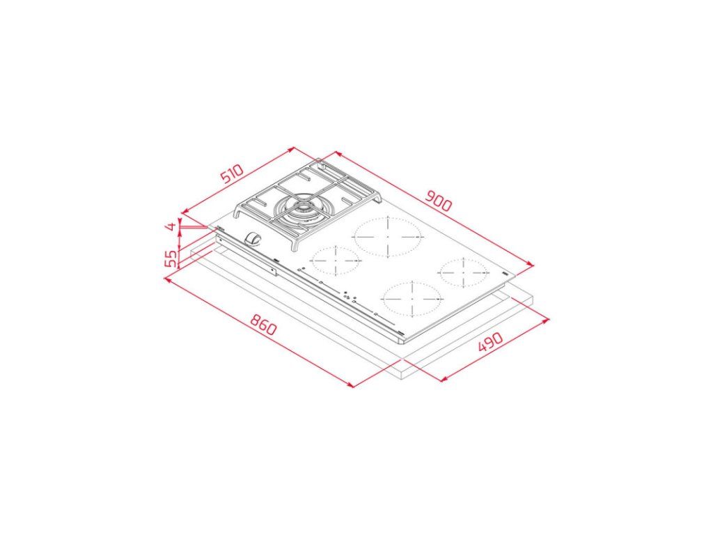 Kombinovaná plynová a indukční varná deska 90 cm
