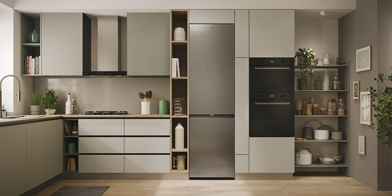 Chladnička se dokonale začlení do designu vaší kuchyně: rukojeť a linie dvířek ladí s výškou kuchyňské desky, zatímco skryté panty umožňují flexibilní polohování s otevíráním dvířek o 90°.