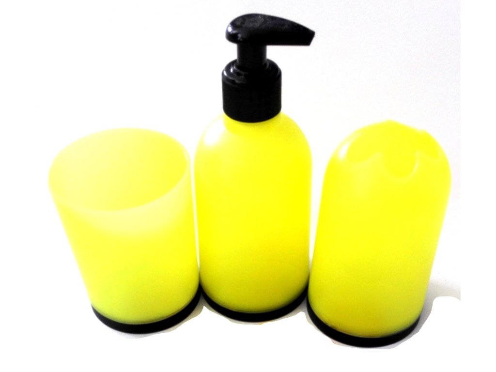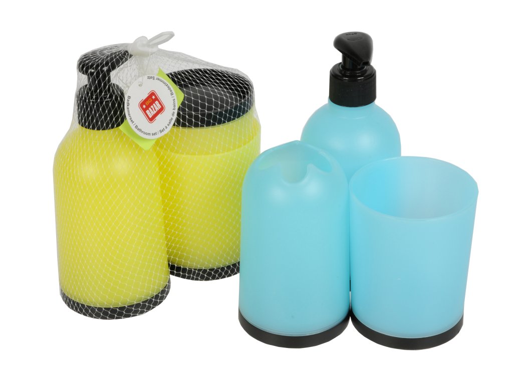 Koupelnový set 3 kusy (dávkovač mýdla, kelímek na kartáčky, kelímek)