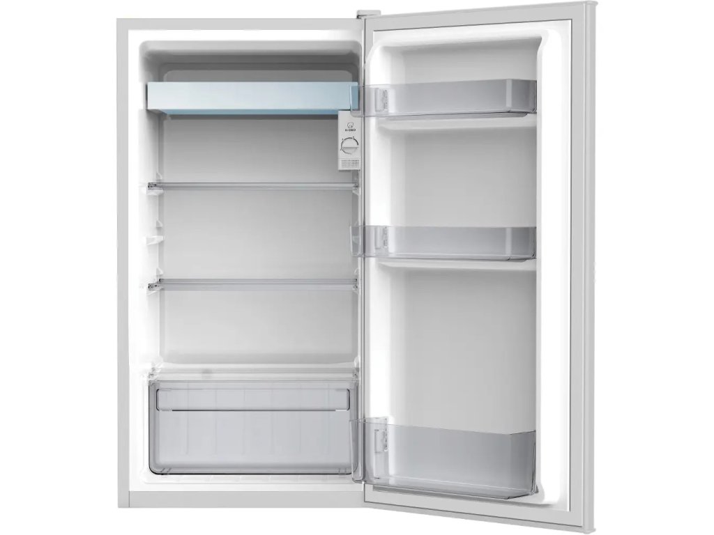 Vnitřek jednodveřové chladničky CANDY je bohatě zásobený praktickými úložnými prostory, přihrádkami ve dveřích, skleněnými policemi i zásuvkou na zeleninu. Neobsahuje mrazák. Využívá technologii statického chlazení s rovnoměrným rozváděním vzduchu, což prodlužuje čerstvost potravin.