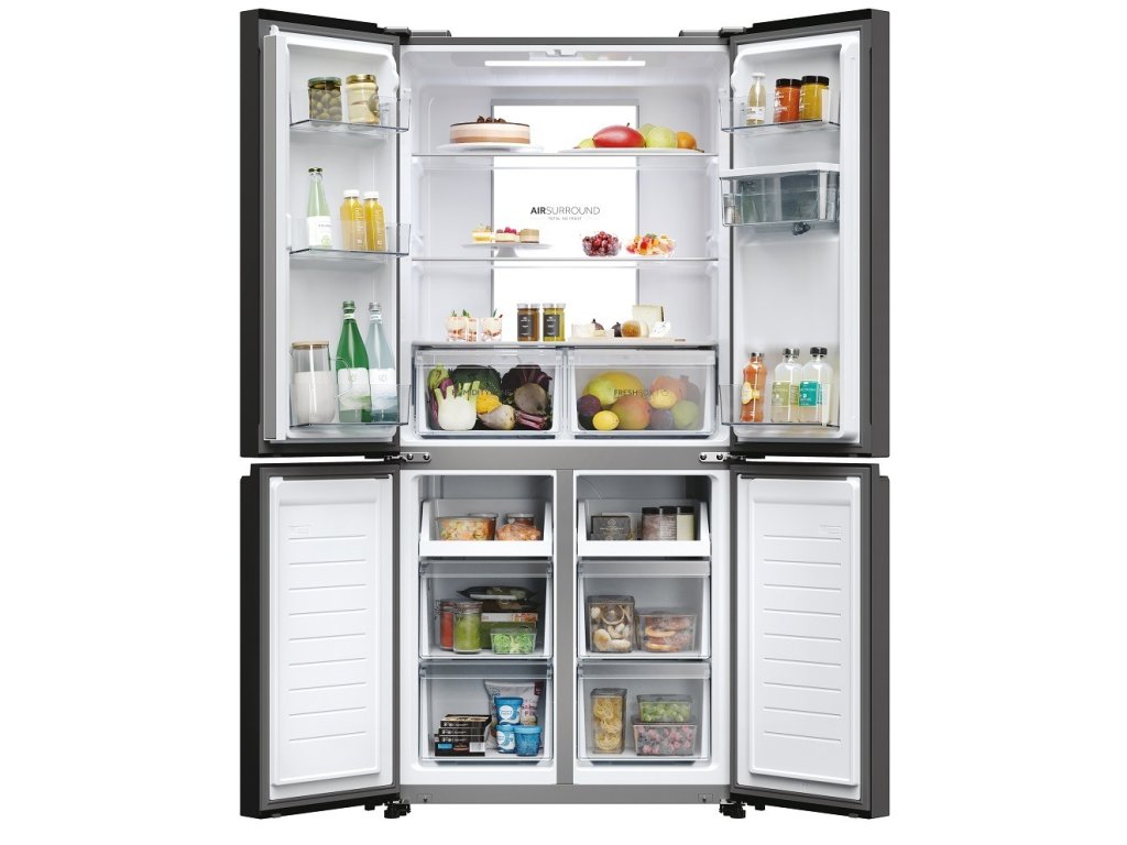 - 4dveřový systém: Ergonomické řešení, které snižuje úniky chladu při otevírání a zajišťuje perfektní přehled o obsahu.