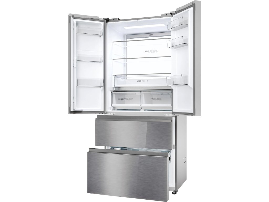 Potřebujete opravdu velkorysý prostor pro své potraviny? Americká chladnička Haier HFR7819ENGC nabízí ohromující celkový objem 504 litrů. Díky francouzskému uspořádání s dvoukřídlými dveřmi v chladicí části a dvěma samostatnými mrazicími zásuvkami získáte dokonalý přehled o všech zásobách. Technologie No Frost vás zbaví nutnosti odmrazování a chytré funkce propojené s aplikací hOn vám umožní mít kontrolu nad čerstvostí potravin přímo ve vašem chytrém telefonu.