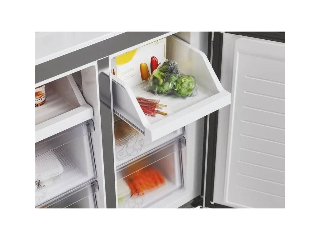 Znamená to, že i když otevřete dveře pouze do úhlu 90°, můžete plně vysunout všechny vnitřní zásuvky. Je to ideální řešení, pokud plánujete lednici umístit do rohu místnosti nebo těsně vedle hluboké skříně.