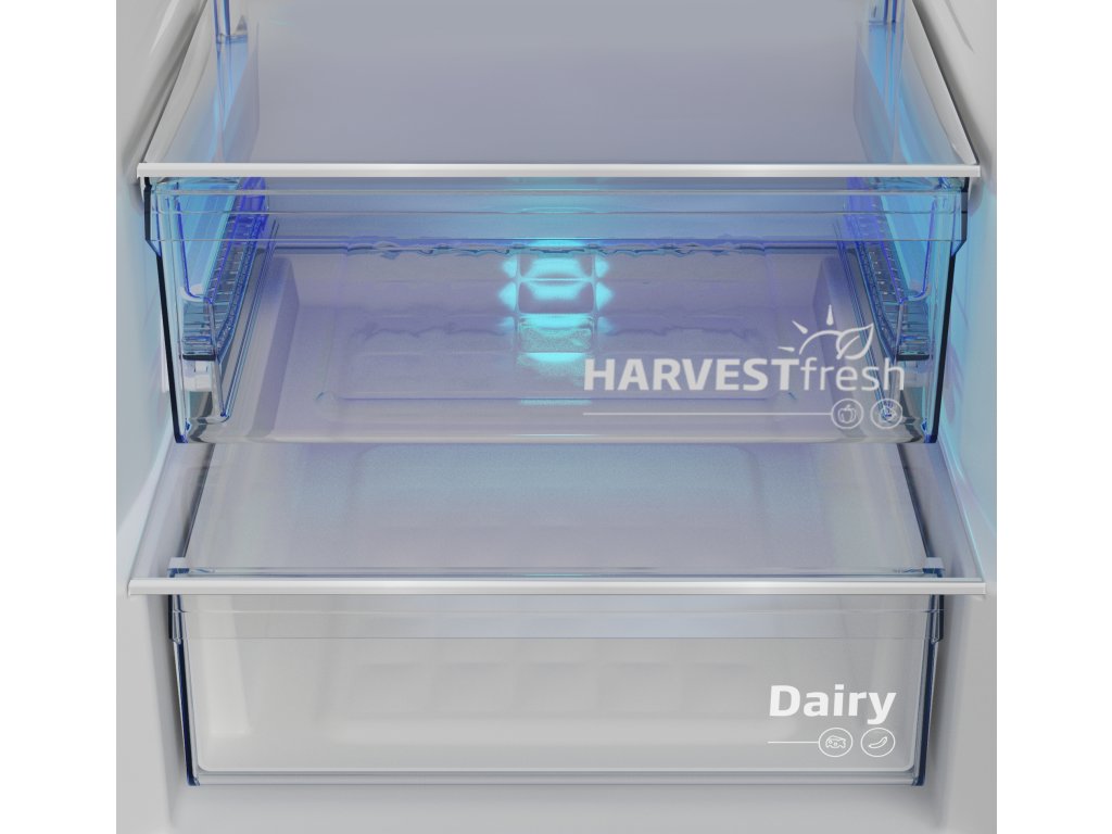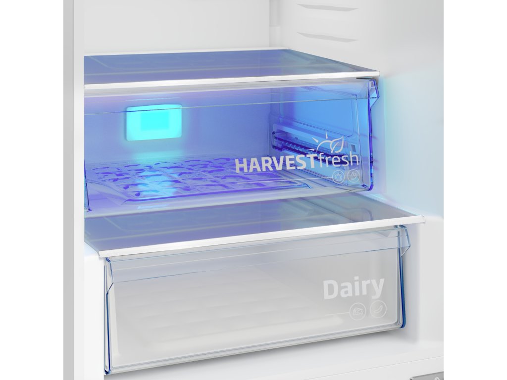 Světelný režim přihrádky HarvestFresh™ kopíruje střídání slunečního světla a tmy během celého dne. To udrží v chodu přirozené procesy v ovoci a zelenině, takže se uchová více vitamínů i chuti, než kdyby byly jen zavřené ve tmě. Uskladněné ovoce a zelenina tak brzy nevadne, nezkazí se dříve, než se sní, a ulehčí časté nakupování.