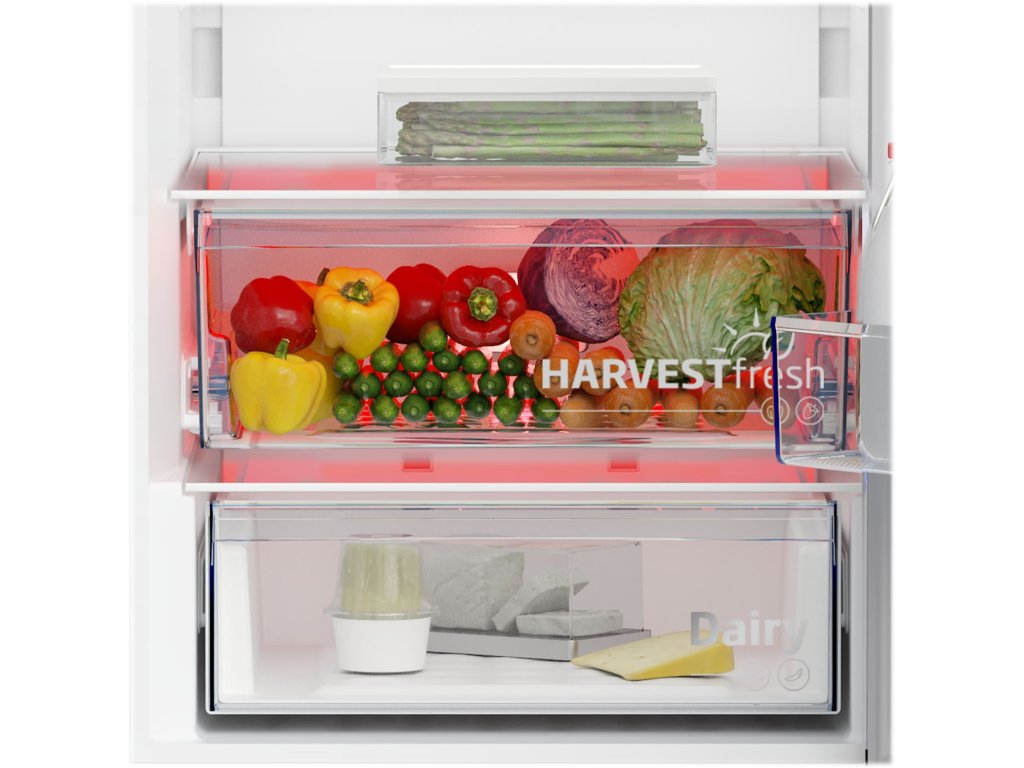 Světelný režim přihrádky HarvestFresh™ kopíruje střídání slunečního světla a tmy během celého dne. To udrží v chodu přirozené procesy v ovoci a zelenině, takže se uchová více vitamínů i chuti, než kdyby byly jen zavřené ve tmě. Uskladněné ovoce a zelenina tak brzy nevadne, nezkazí se dříve, než se sní, a ulehčí časté nakupování.