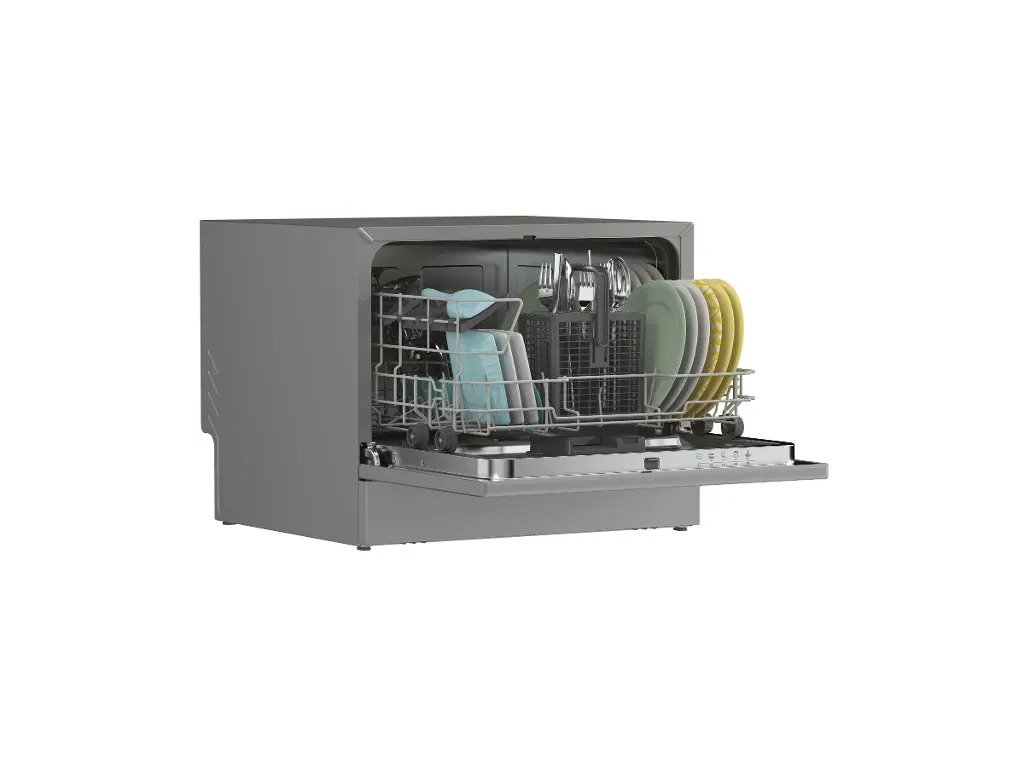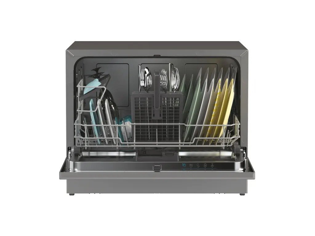 Myčka má kapacitu 6 sad nádobí. Jedna sada standardně obsahuje mělký, hluboký a dezertní talíř, hrnek, sklenici a kompletní příbor. Díky chytrému koši však dovnitř pohodlně vyskládáte i menší hrnec nebo pánev.