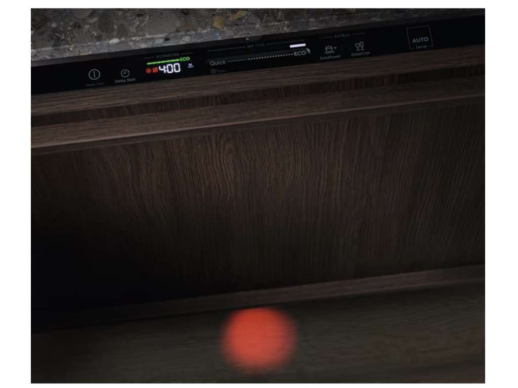 Pokročilá technologie AirDry zlepšuje výsledky sušení tím, že na konci cyklu automaticky pootevře dvířka a nechá vzduch volně proudit, což zanechá nádobí dokonale suché bez zbytečné spotřeby energie. Světelný indikátor na podlazevás diskrétně informuje o průběhu programu – červená znamená mytí a zelená označuje dokončení.