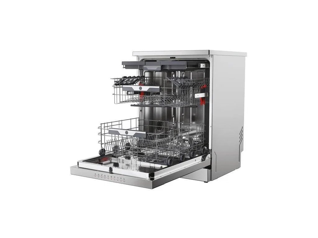 Hledáte myčku, která si poradí i s velkým rodinným obědem a přitom minimálně zatíží váš rozpočet? Volně stojící myčka Hoover HF 5B2S1PX v moderním šedém provedení nabízí nadstandardní kapacitu pro 15 sad nádobí. Díky vysoce úsporné energetické třídě B a spotřebě pouhých 9,5 litru vody na cyklus v programu ECO se řadí mezi nejefektivnější spotřebiče na trhu. Inovativní funkce, jako je automatické otevírání dveří nebo Wi-Fi konektivita, dělají z každodenního mytí nádobí jednoduchou a chytrou záležitost.