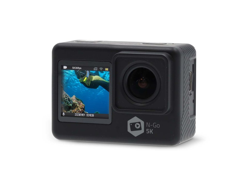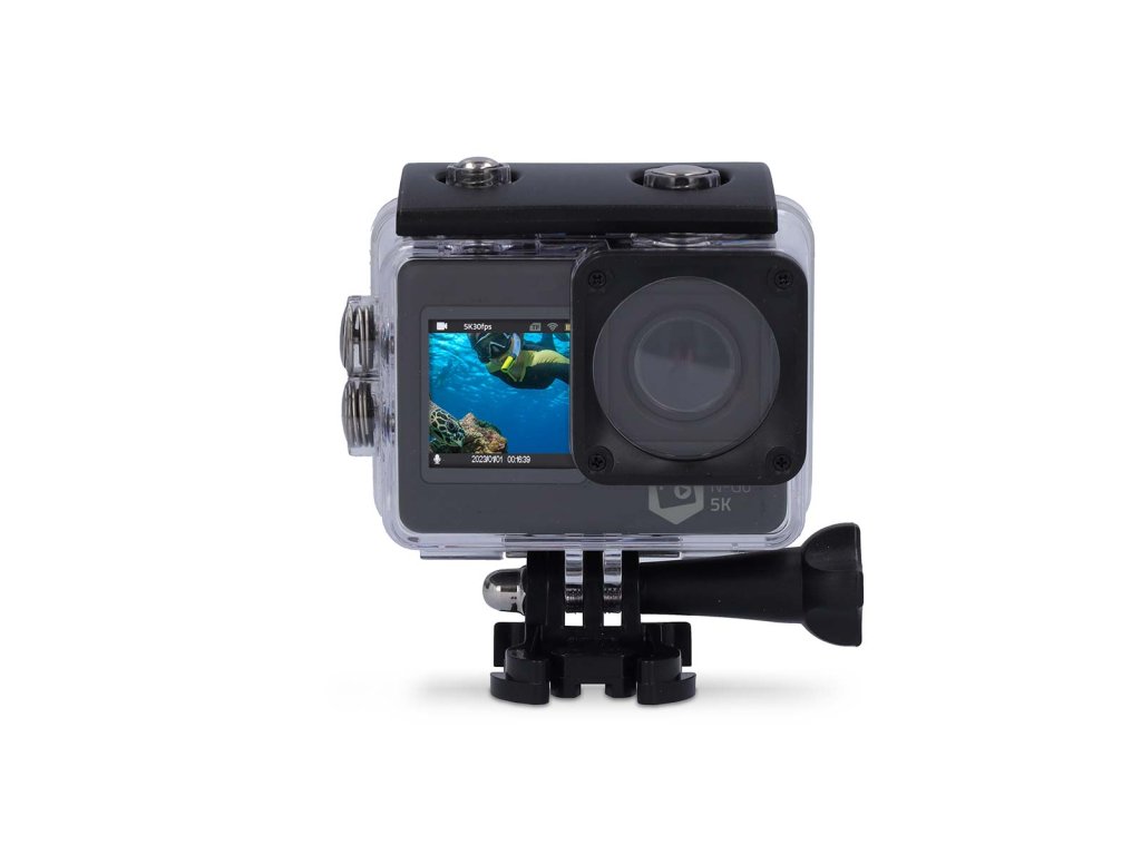 - Akční kamera s duální obrazovkou s rozlišením HD 5K