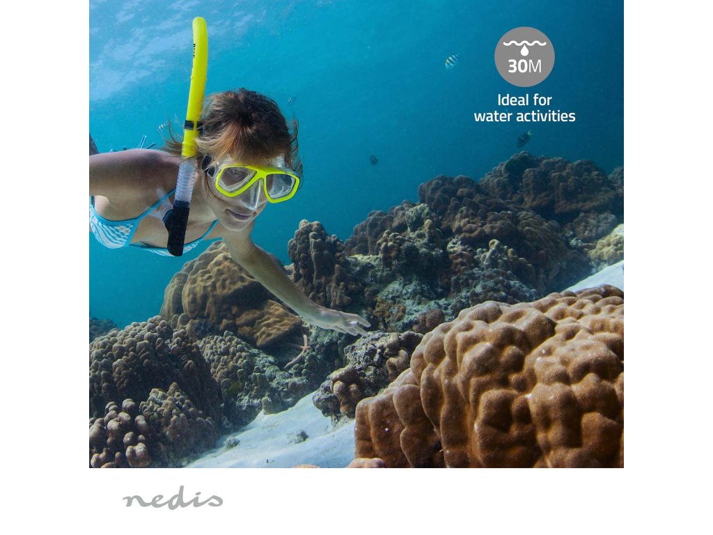 Akční kamera Nedis se dvěma obrazovkami je navržena tak, aby odolala náročnému prostředí, a dodává se v robustním pouzdře, které je vodotěsné až do 30 metrů. Vezměte si ji s sebou při potápění, šnorchlování, surfování nebo jiných vodních sportech – nikdy si nenechte ujít zachycení podvodních zázraků.