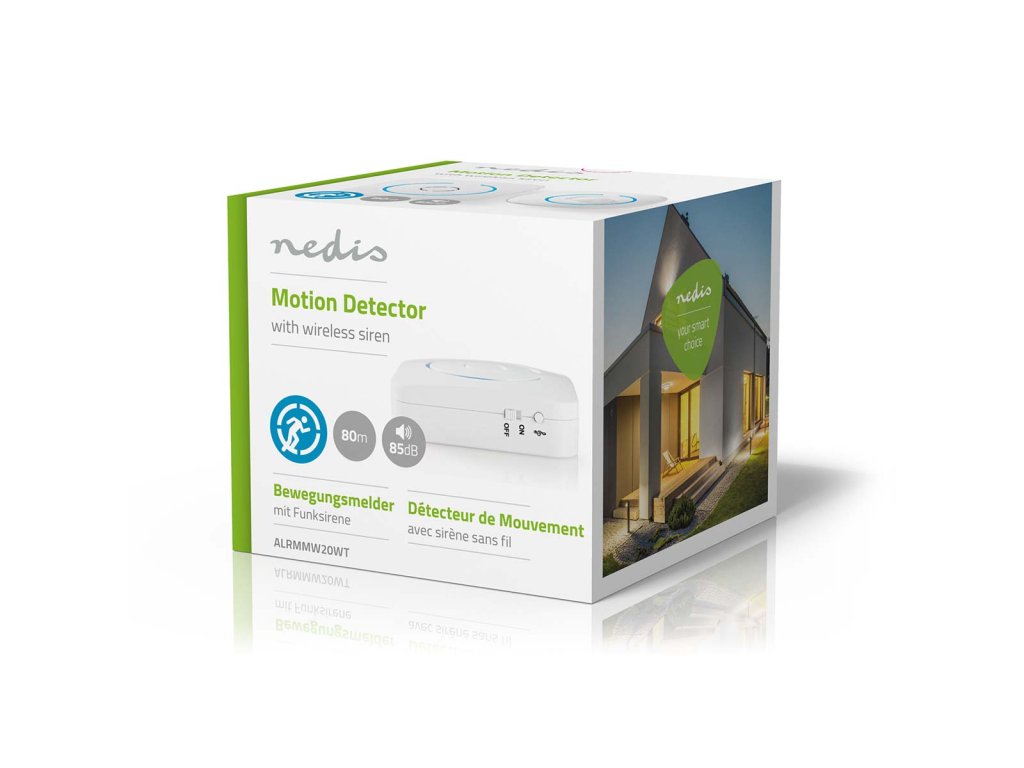 Nedis ALRMMW20WT detektor pohybu s bezdrátovým alarmem, 8 vyzváněcích tónů, světelná signalizace