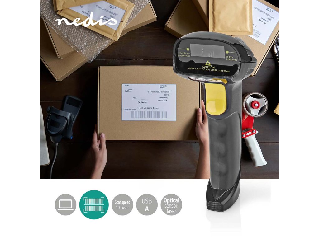 Nedis BSCN1D100BK čtečka čárových kódů | Laser | Kabelové | 1D lineární | Napájení z USB | USB2.0
