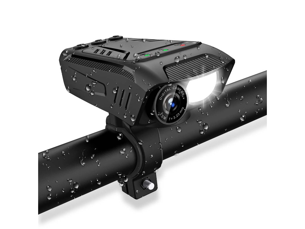 - Multifunkční cyklistická kamera 3 v 1 Full HD s LED světlometem a klaksonem