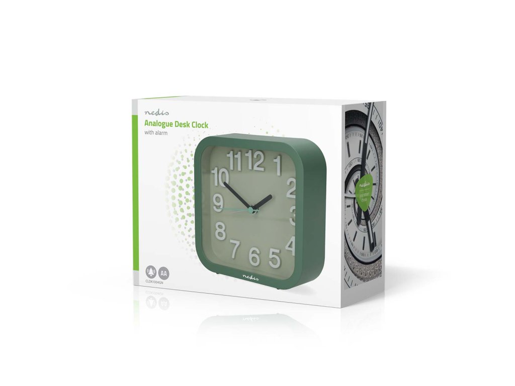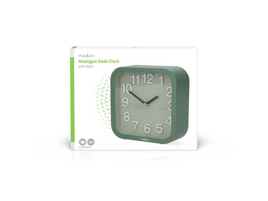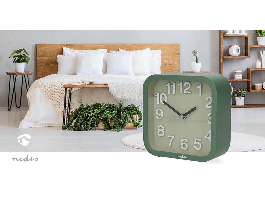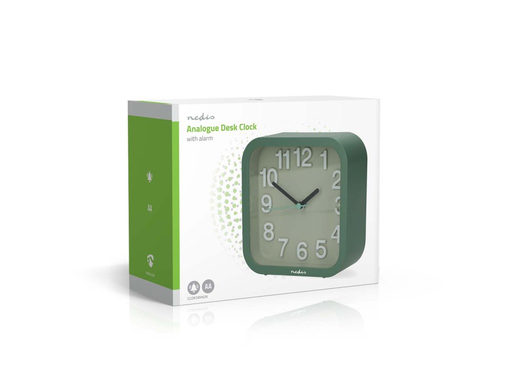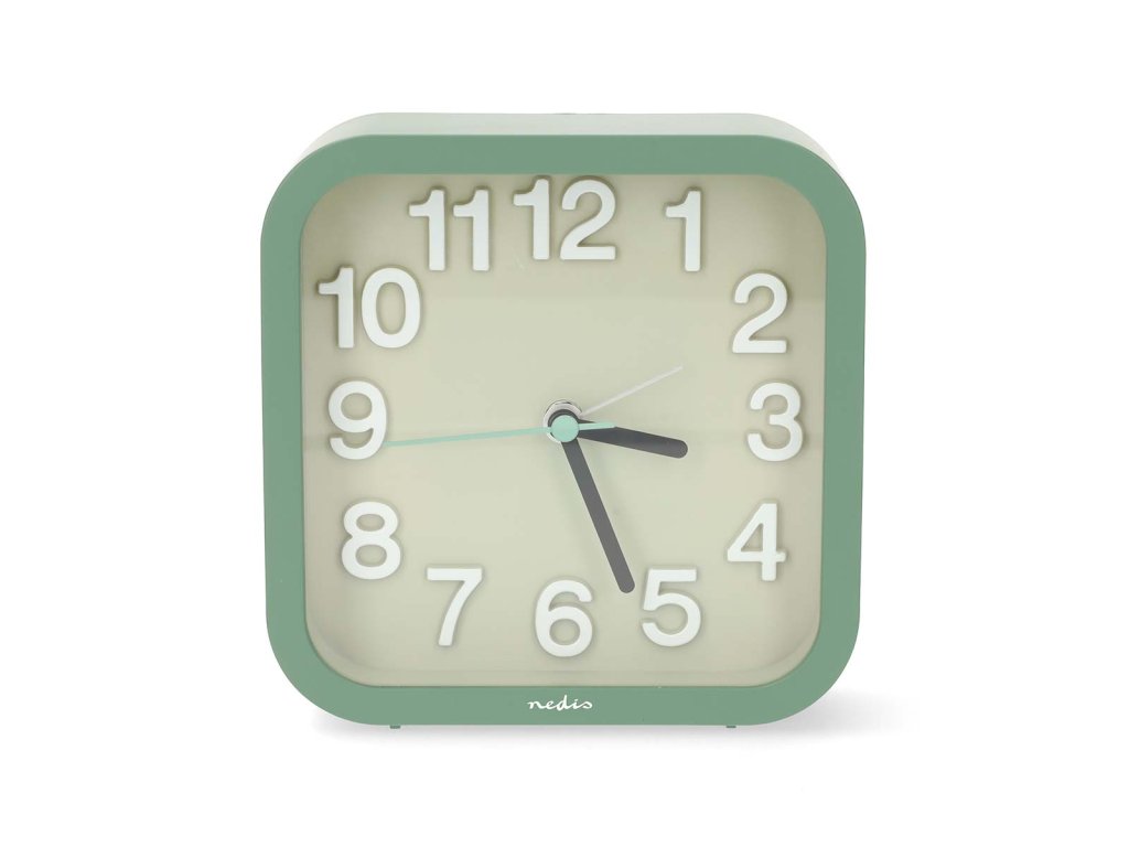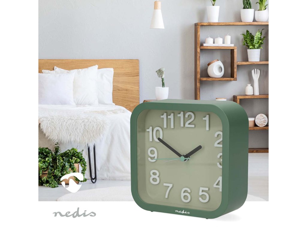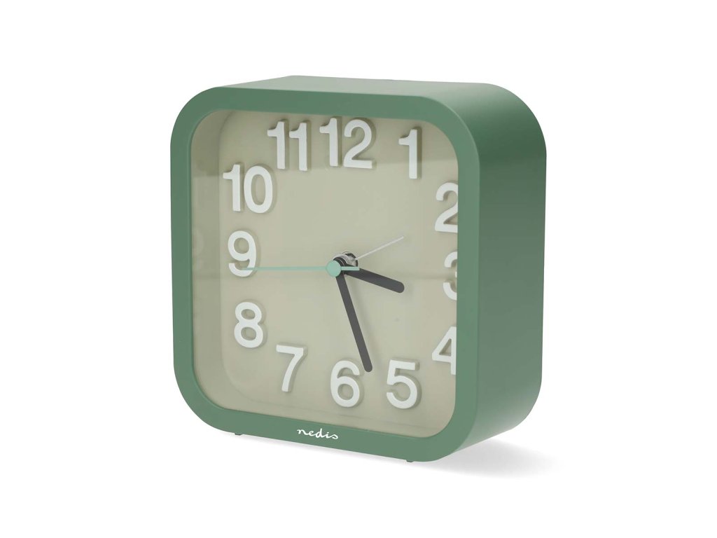 Nedis CLDK1004GN stolní ručičkový budík, čtvercový zelený