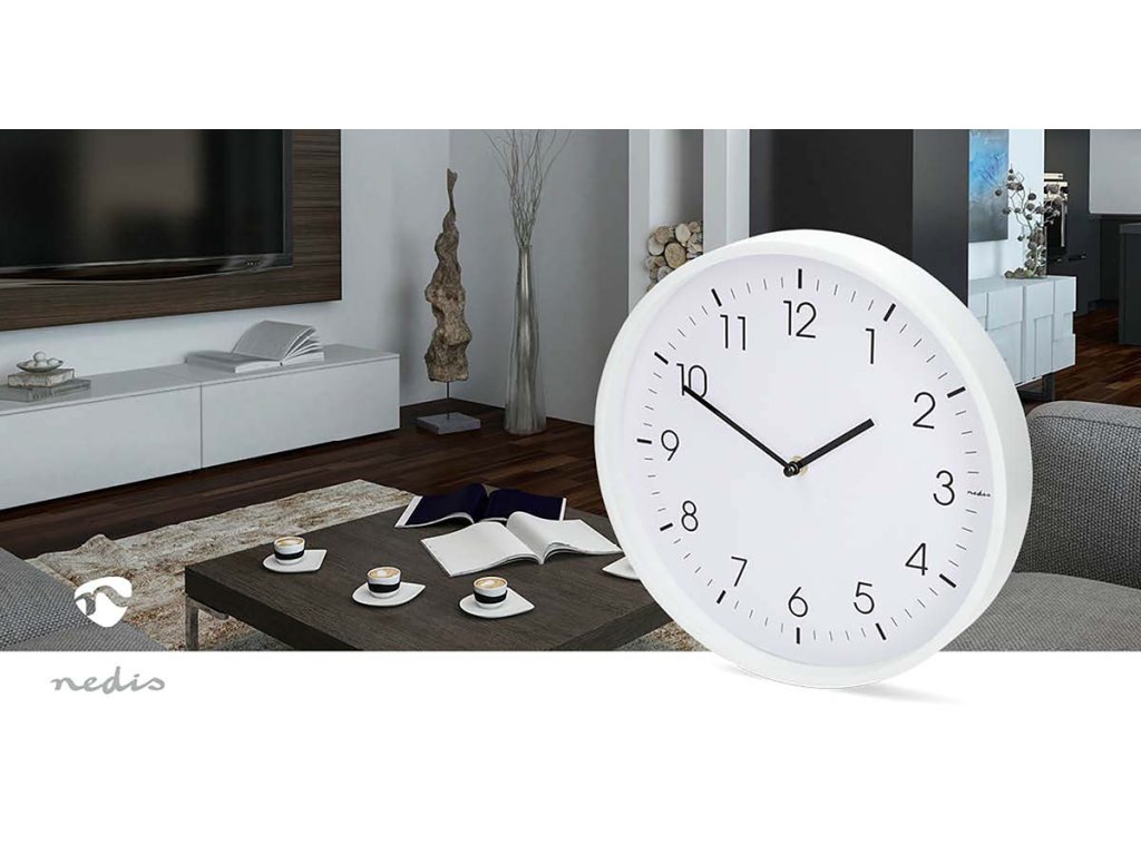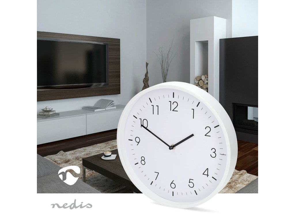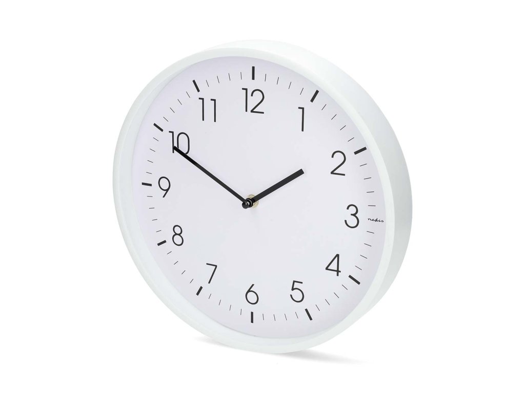Nedis CLWA1226WT nástěnné hodiny | Průměr: 300 mm | Plast | Tichý pohyb | Bílá
