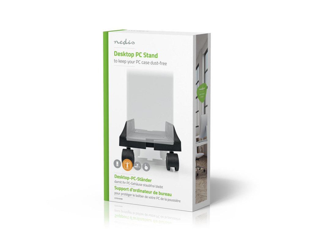 Nedis® podstavec s kolečky pro PC skříň. Počítač stojící na podlaze nebo dokonce na koberci nasává jemný prach, který se usazuje na lopatkách chladicích ventilátorů a dalších dílech počítače. Prachové usazeniny zhoršují zásadním způsobem odvětrání a chlazení počítače, snižují jeho výkon a životnost.