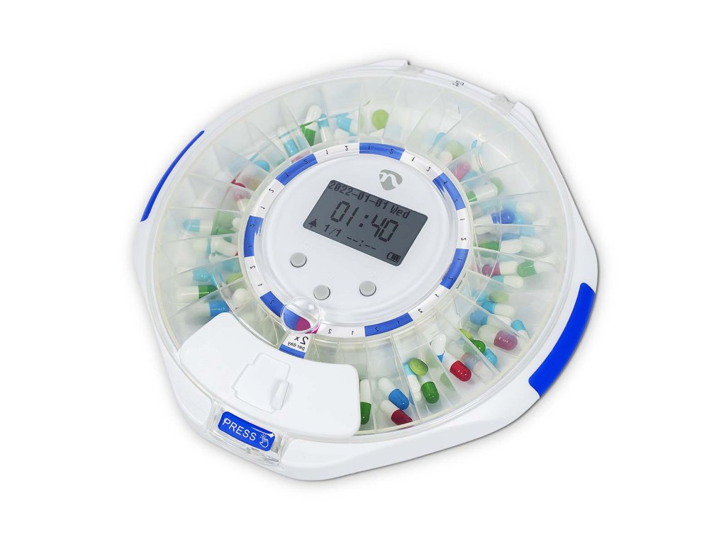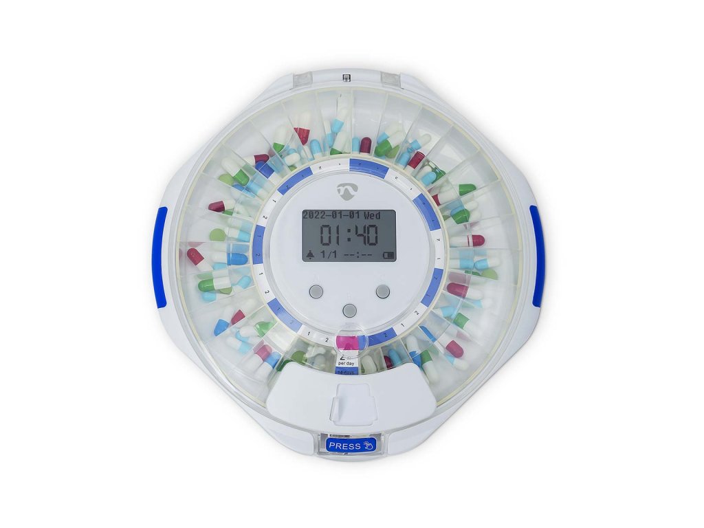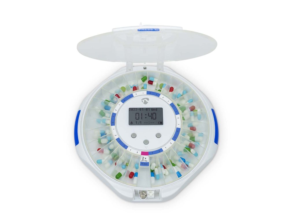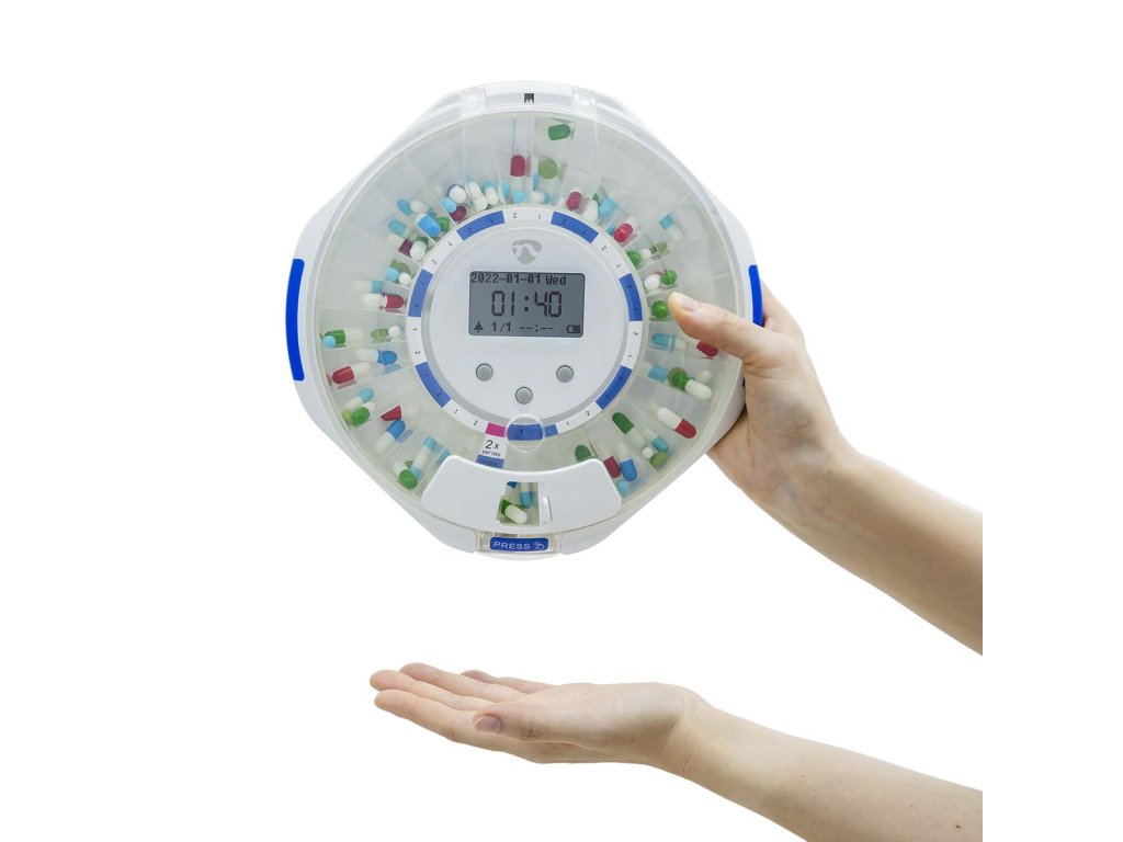 Smart Wi-Fi dávkovač pilulek je dodáván s 28 přihrádkami pro uložení více pilulek, tablet a kapslí na oddíl. 9 dávkovacích kroužků automaticky vydává pilulky kdekoli od 1x do 9x denně po dobu až 28 dnů, což usnadňuje správu i těch nejsložitějších léčebných režimů. Nastavitelné světelné a zvukové alarmy pro předpisy a vitamíny zajišťují, že nikdy nevynecháte žádnou dávku.