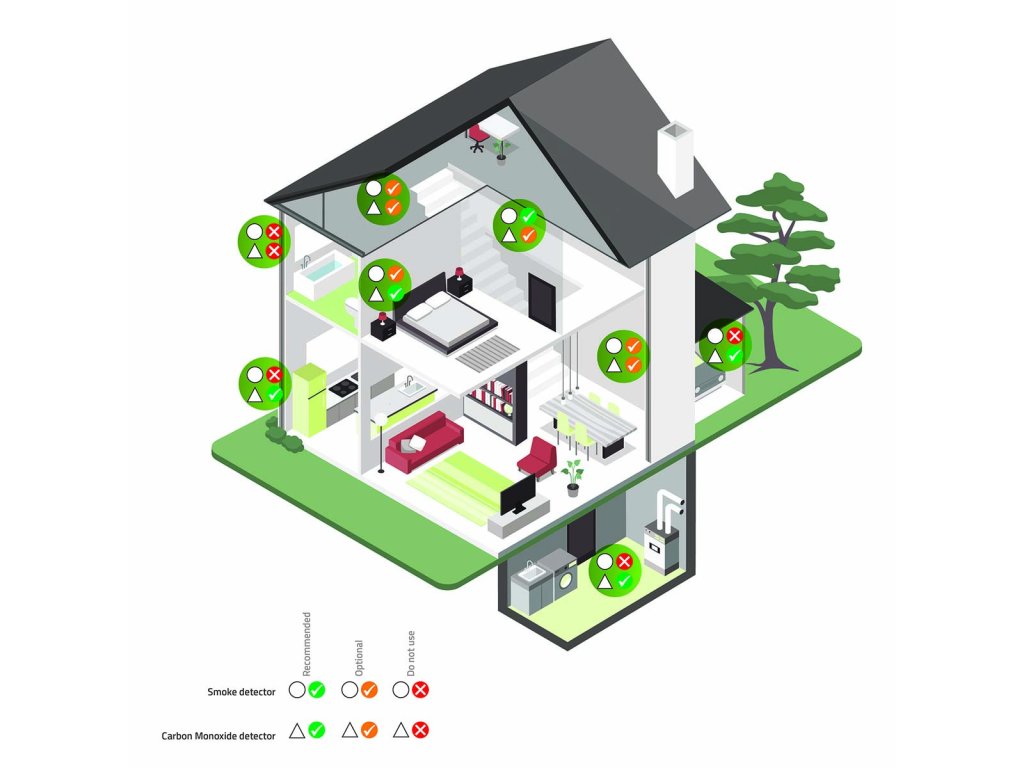 Detektor kouře zvyšuje bezpečí domova. Detektor je vybaven párovacím tlačítkem, které umožňuje bezdrátové připojení k neomezenému počtu detektorů kouře DTCTSC10WT a DTCTSC10WT2. Pokud jeden z detektorů zaznamená kouř, vyšle rádiový signál ostatním detektorům a aktivuje je. Detektor je také vybaven testovacím tlačítkem a upozorněním na nízký stav baterie.