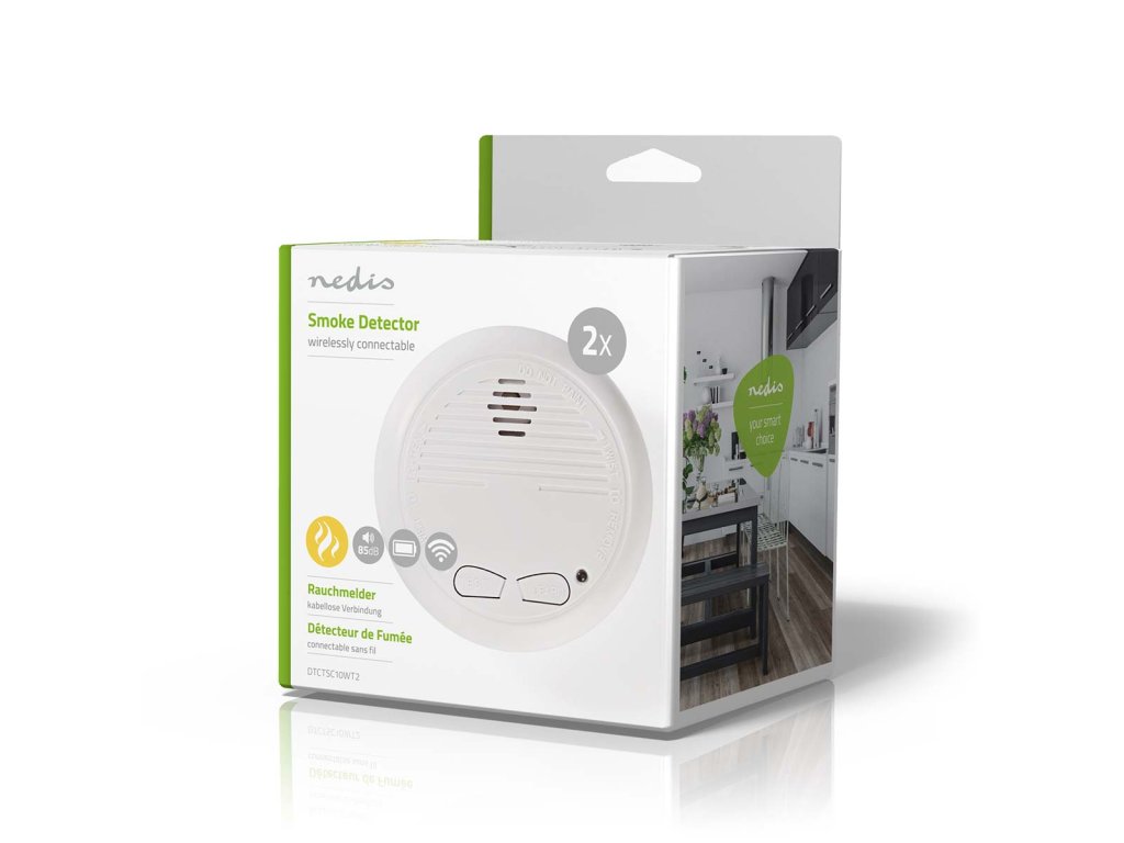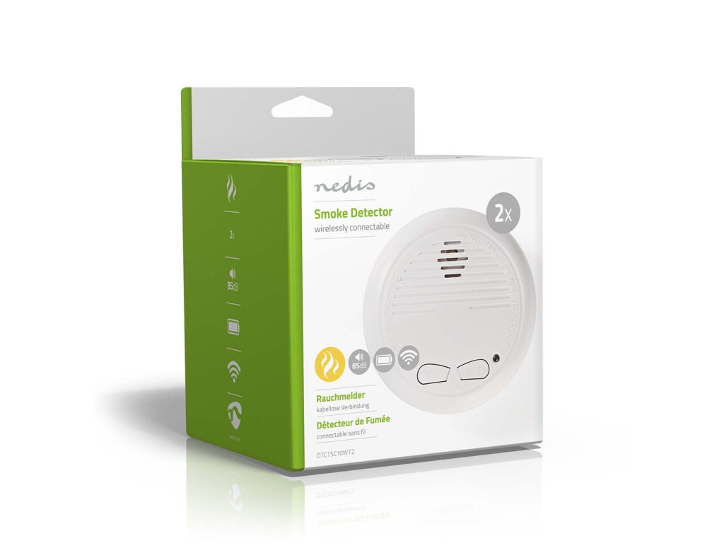Nedis DTCTSC10WT2 detektor kouře dle EN14604, sada 2ks, bezdrátově propojitelný, 10 let životnost snímače
