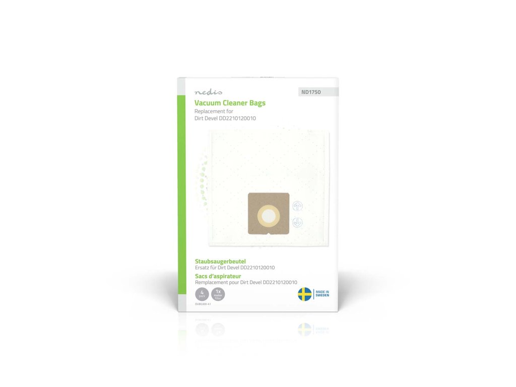 Nedis DUBG300-4.1 sáčky pro vysavače | 4 ks | Syntetický | náhrada pro Dirt Devil Swiffy M 1550 - 1556 Series | Bílá