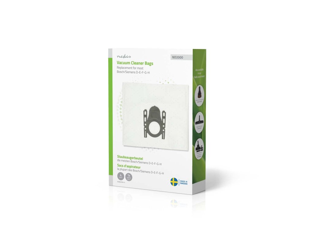 Nedis DUBG700-4.1 sáčky pro vysavače | 4 ks | Syntetický | náhrada pro Bosch / Siemens D - E - F - G - H | Bílá