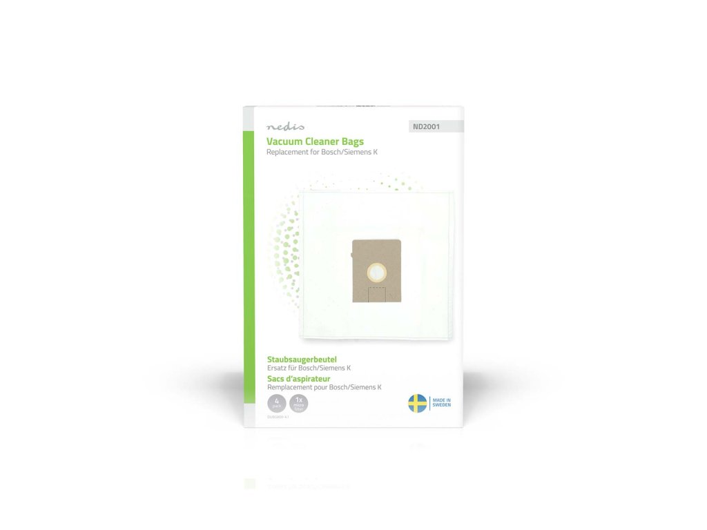 Nedis DUBG800-4.1 sáčky pro vysavače | 4 ks | Syntetický | náhrada pro Bosch / Siemens Arriva - Smiley K | Bílá