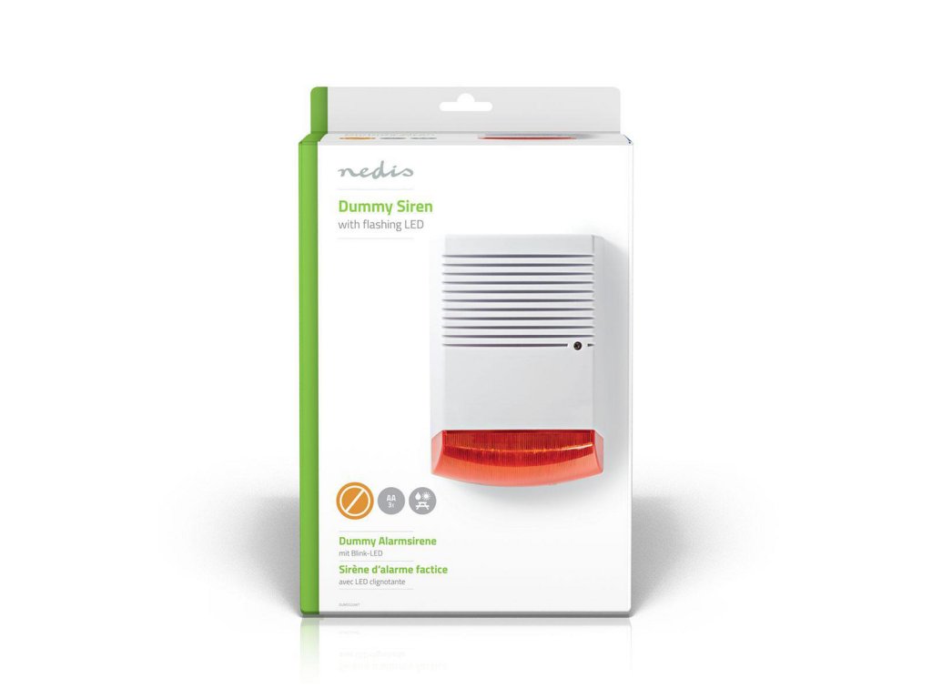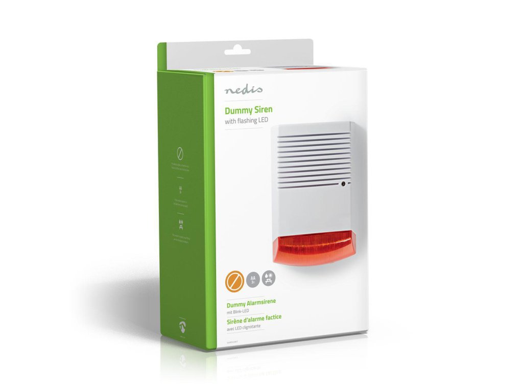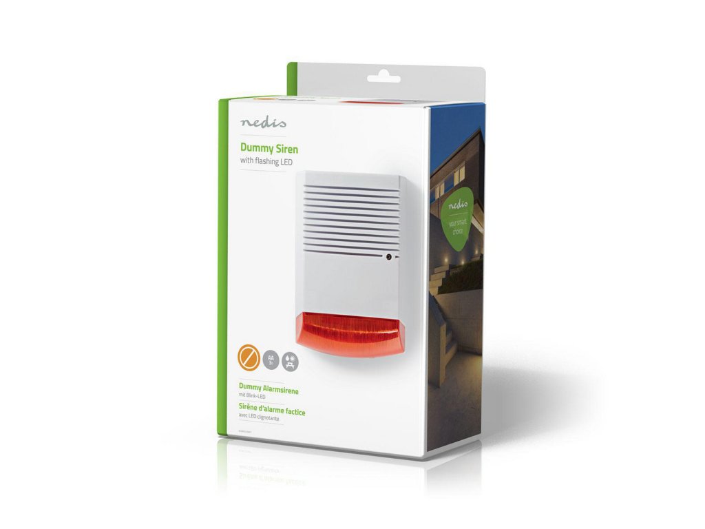 Atrapa venkovní poplachové sirény Nedis® pomáhá zastrašit narušitele. Má profesionální design, vyznačuje se vestavěnou blikající LED a lze ji snadno namontovat pomocí dodané samolepky.