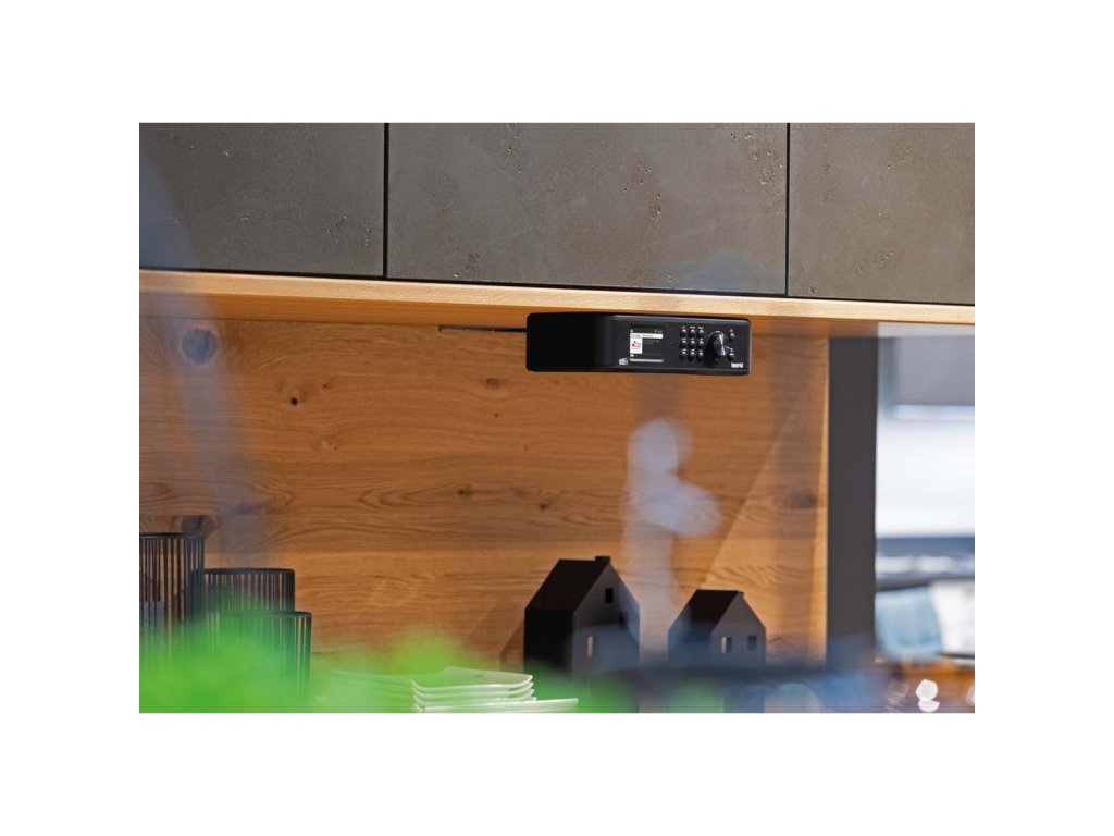 S montážní sadou pod kuchyňskou linku lze rádio v kuchyni nainstalovat v několika málo krocích. Pomocí této montážní sady je možná také instalace na stěnu.