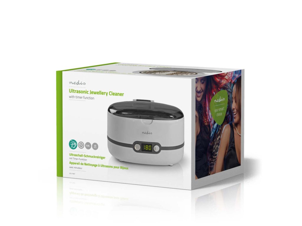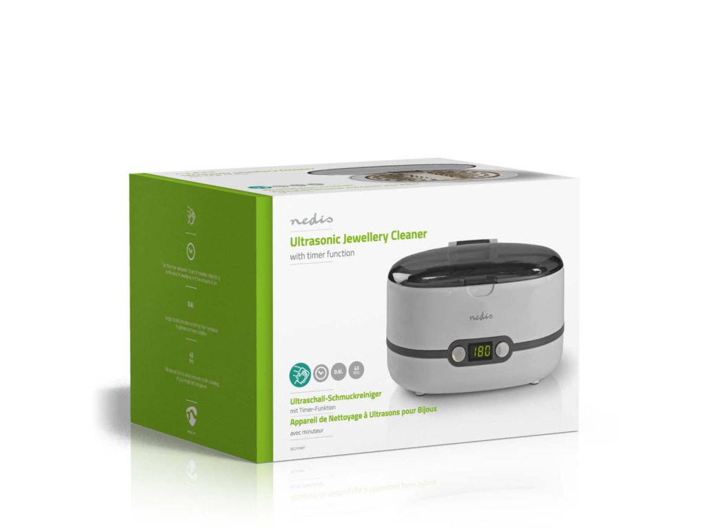 Vyčistěte své šperky s touto ultrazvukovou čističkou Nedis®. Ultrazvukové vlny vibrují při frekvenci 43 kHz a díky tomu vyčistí veškerý prach a nečistoty. Stačí umístit šperky do 600 ml nádrže a spustit zařízení. Perfektně vyčistíte i těžko přístupné záhyby. Digitální časovač umožňuje nastavit dobu čištění od 1.5 do 8 minut. Průhledný kryt Vám umožňuje sledovat čištění šperků. Ať jsou Vaše cenné dekorace, šperky a dokonce i brýle vždy lesklé jako nové!