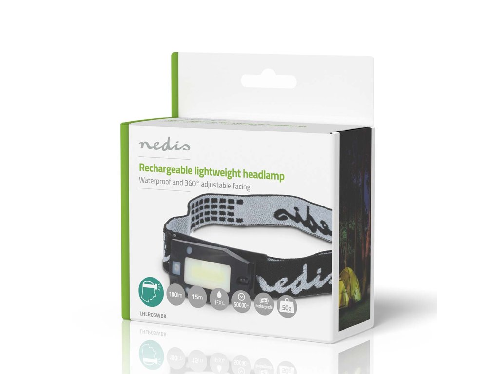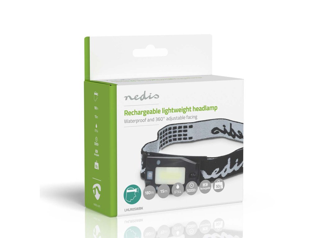 Nedis LHLR05WBK LED čelovka se senzorem pohybu, 180 lm, dobíjecí, USB-C