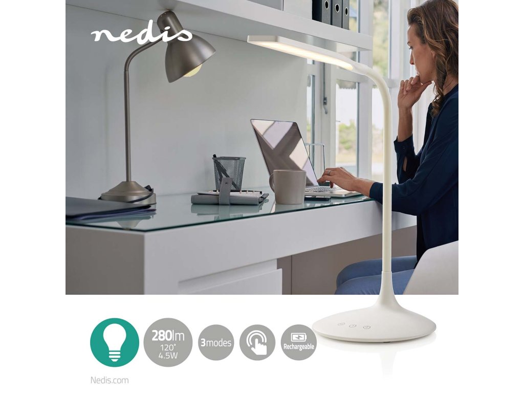 Nedis LTLG3M1WT2 LED stolní lampa / dotykové ovládání / 3 režimy svícení / nabíjecí / 250 lm bílá