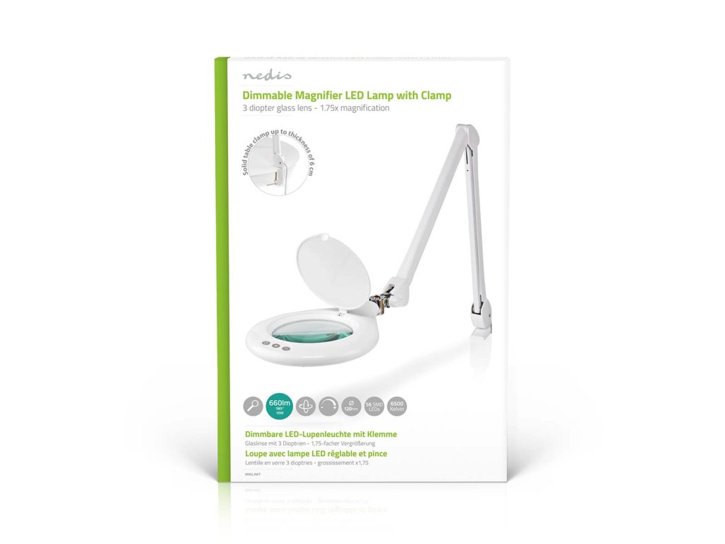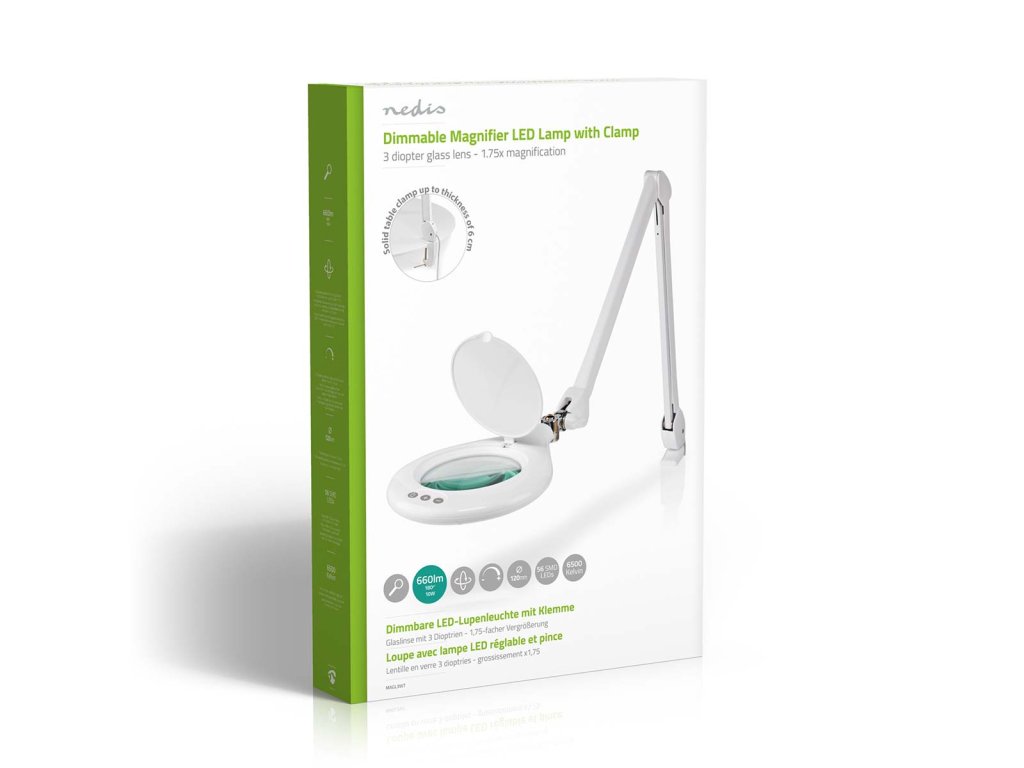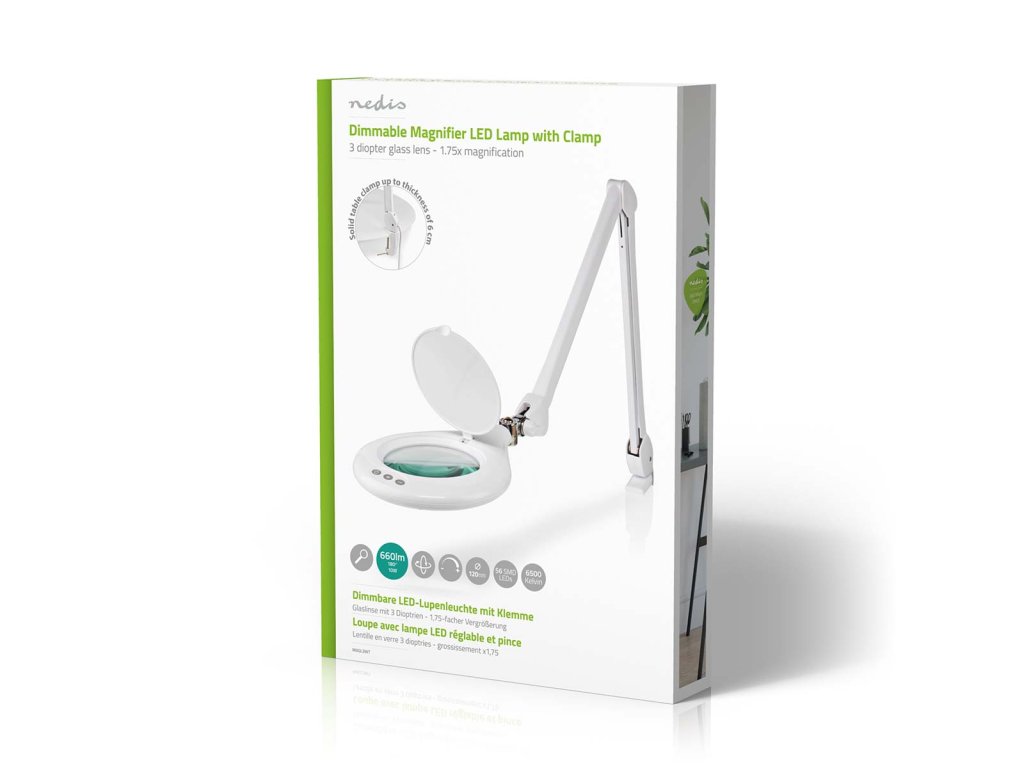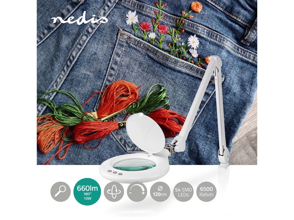 Nedis MAGL3WT pracovní lampa LED s lupou 3 dioptrie, 6500K, 10 W, 660 lm, ovládání intenzity světla