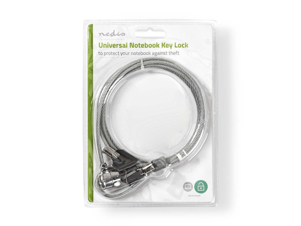 Univerzální zámek Nedis® vhodný např. pro notebook, kompatibilní se systémem Kensington lock. Dodáván se 2 klíči.