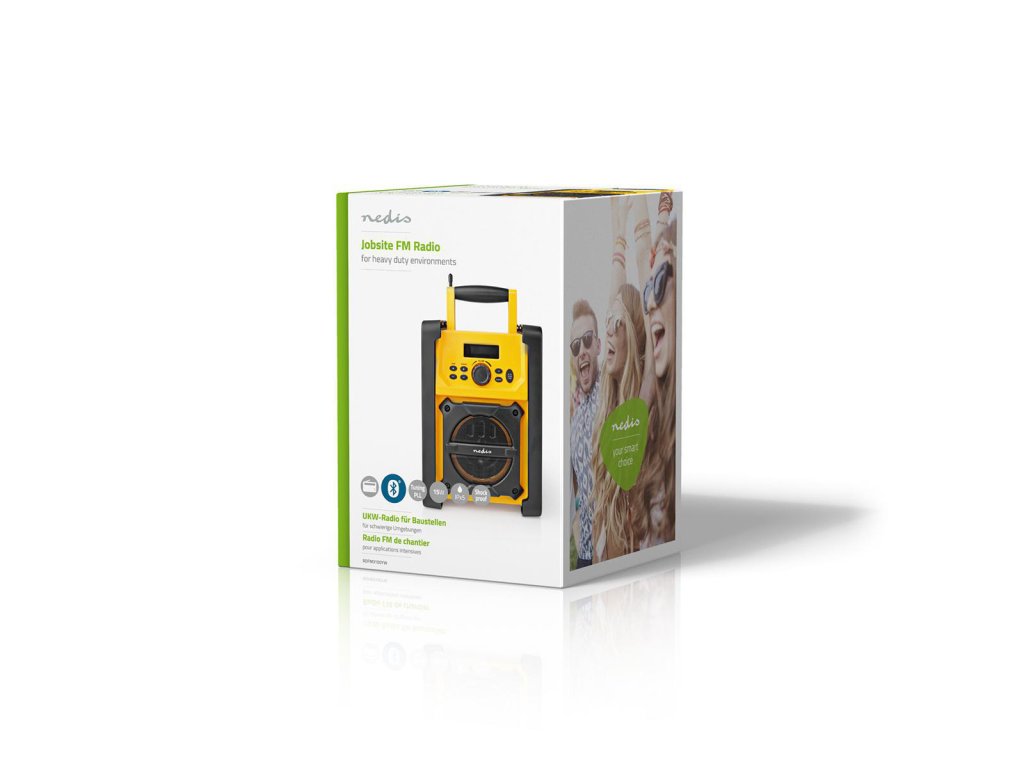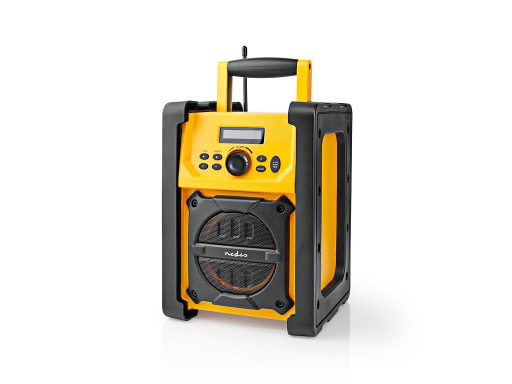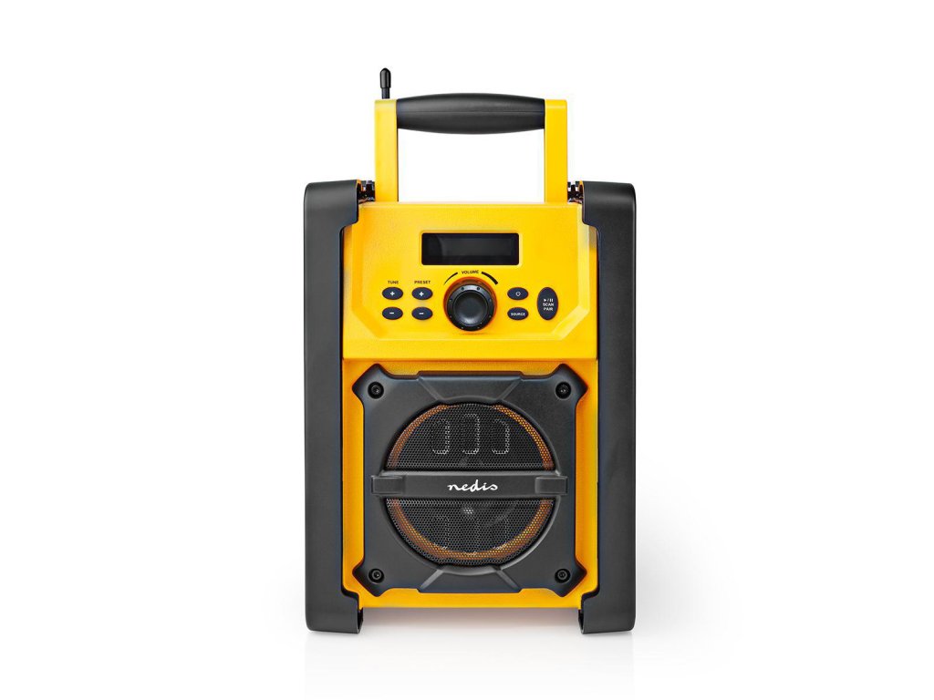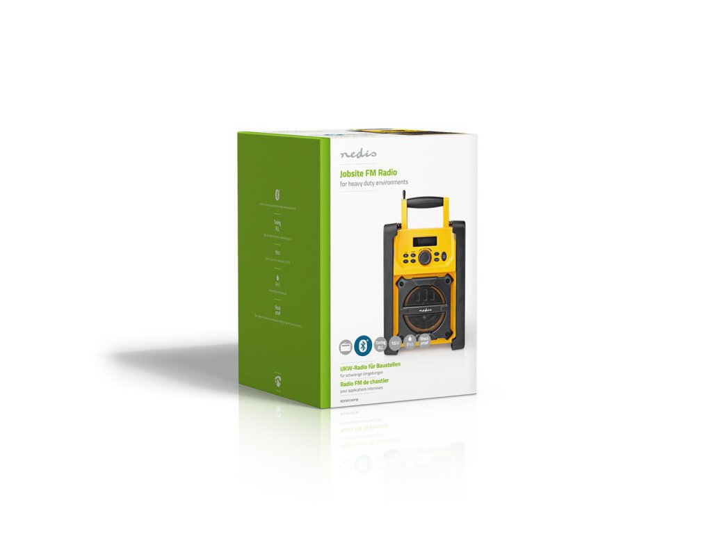 Nedis® outdoorové stavební FM rádio s Bluetooth®. Díky vodotěsnému provedení IPX5 je chráněno proti dešti, rozlitým tekutinám a tryskající vodě je dokonalým a odolným společníkem na staveniště nebo pro domácí kutily. Po stranách jsou tlumiče nárazů, které poskytují řádnou ochranu proti neúmyslným nárazům a úderům, jejichž riziko je již výrazně sníženo díky jasné žluté barvě tohoto výrobku.