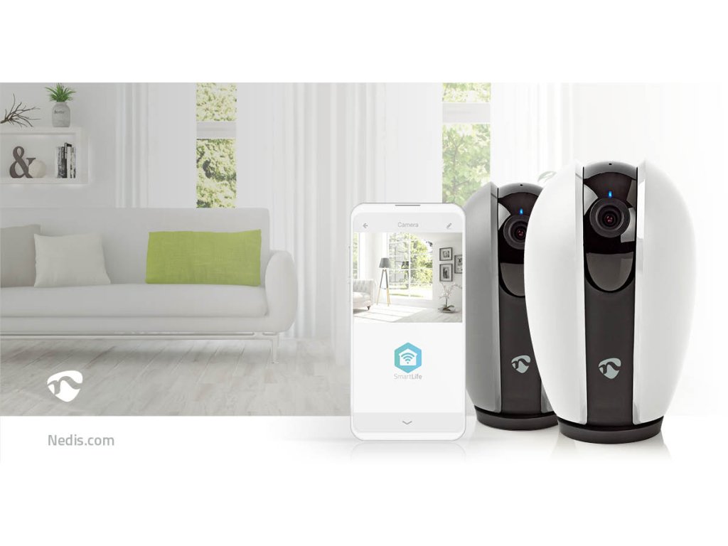 Nedis® SmartLife™ chytrá IP kamera představuje základní doplněk inteligentního domácího systému a připojuje se přímo k Vaší domácí Wi-Fi síti – k jejímu spouštění pohybem nebo zvukem v místnosti není vyžadován žádný další adaptér. Kamera umožňuje vzdáleně ovládat natáčení i náklon a umožňuje obousměrnou komunikaci, která Vám umožní mluvit a slyšet osoby v dané místnosti. Napájení prostřednictvím síťového napájecího adaptéru (součástí).