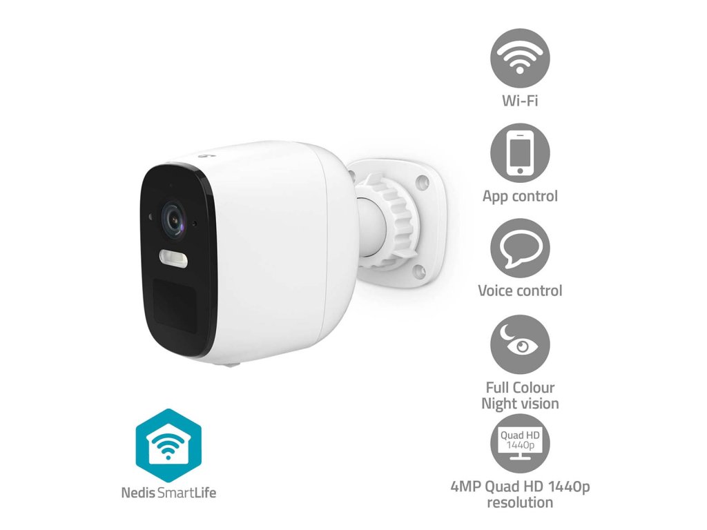 Nedis SmartLife chytrá IP kamera WiFi, 4MP Quad HD 1440p / 2560x1440, náklon, reflektor, PIR, noční vidění, microSD, IP66 (WIFICBO32WT)