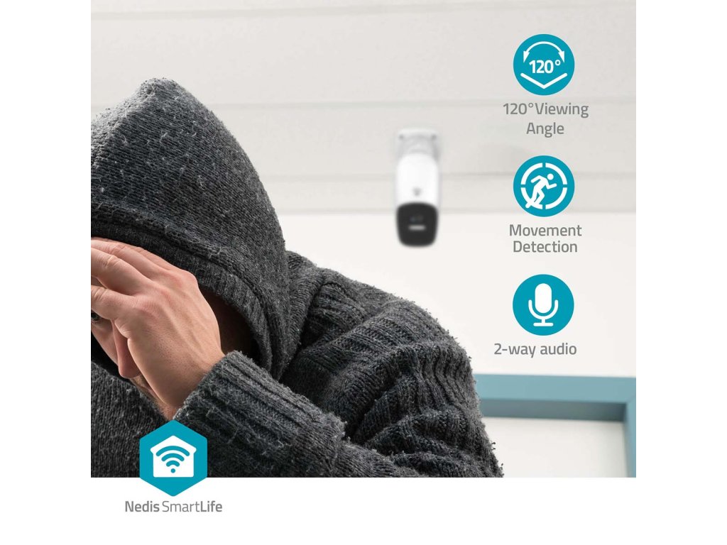 Vše, co vidíte, můžete sledovat a reagovat na vše, co vidíte v reálném čase, prostřednictvím aplikace Nedis SmartLife. Díky zornému poli 120° máte k dispozici širokoúhlé zorné pole, abyste měli přehled o svých věcech. Díky slotu micro SD můžete ukládat záznamy na micro SD kartu až do velikosti 128 GB (není součástí balení). Nahrává v rozlišení Quad HD (2560 x 1440 pixelů) pro úplnou čistotu zachycených snímků. K dispozici je také možnost uložit video materiál v naší aplikaci prostřednictvím cloudového řešení (na základě předplatného).