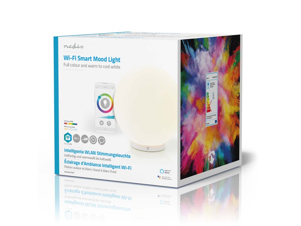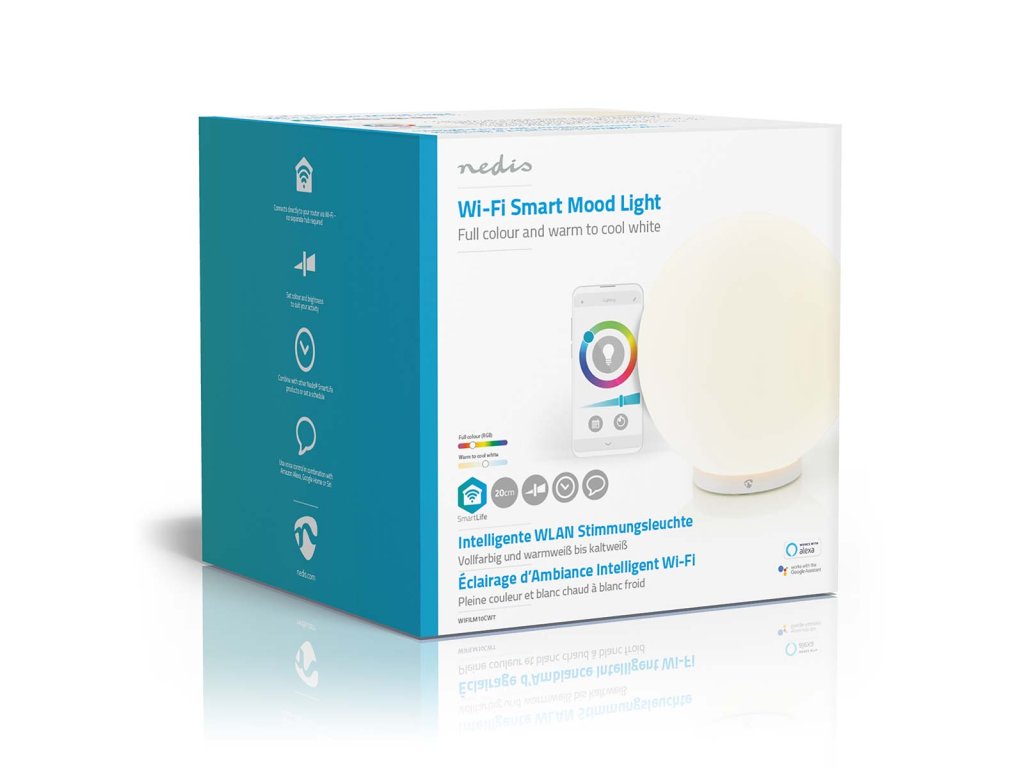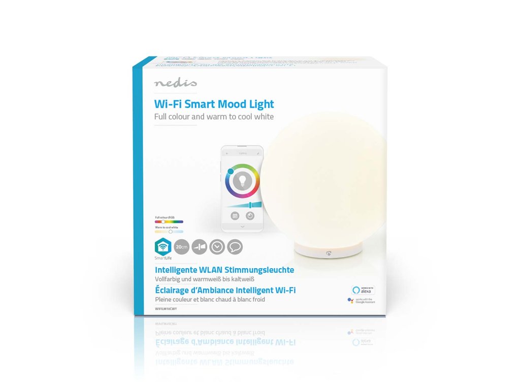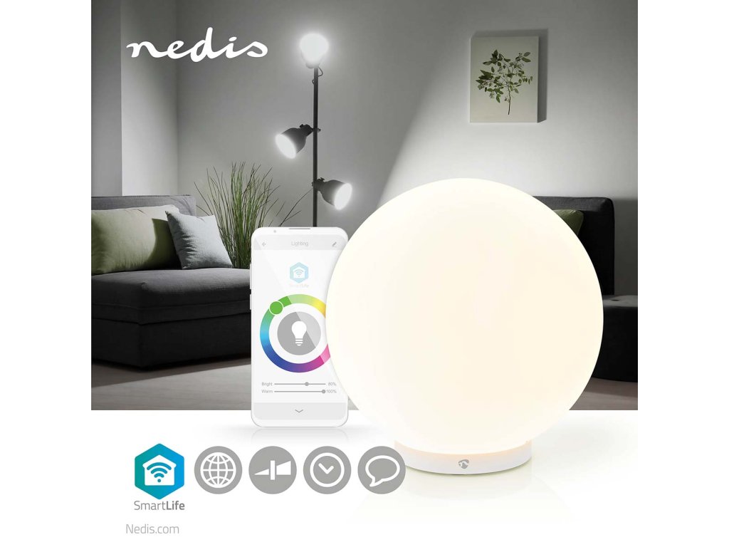 K ovládání lampičky potřebujete doma pouze signál sítě Wi-Fi a chytrý telefon s nainstalovanou aplikací Nedis SmartLife. Není třeba žádné doplňkové brány ani rozbočovače, protože se světlo připojuje přímo ke směrovači přes síť Wi-Fi. Připojíte-li ji ke službě Google Assistant nebo Amazon Alexa, budete moci nastavovat předvolby světla i hlasovými příkazy.