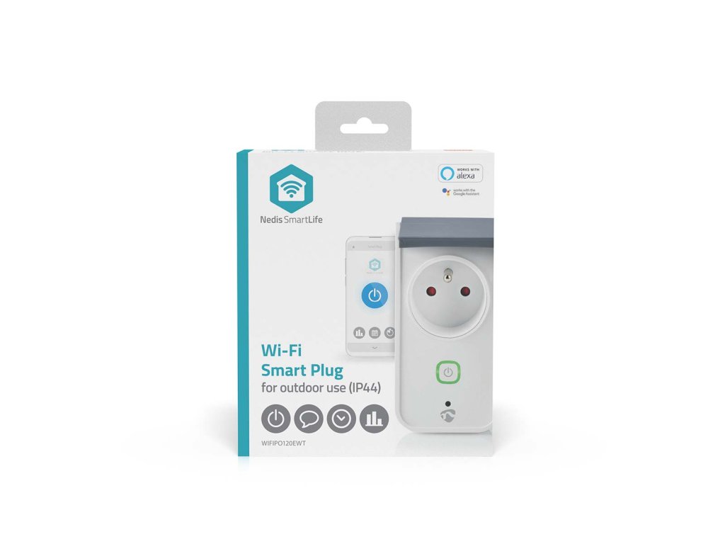 Nedis SmartLife chytrá venkovní zásuvka, monitor spotřeby, ochranný kolík, 16 A, IP44 (WIFIPO120EWT)