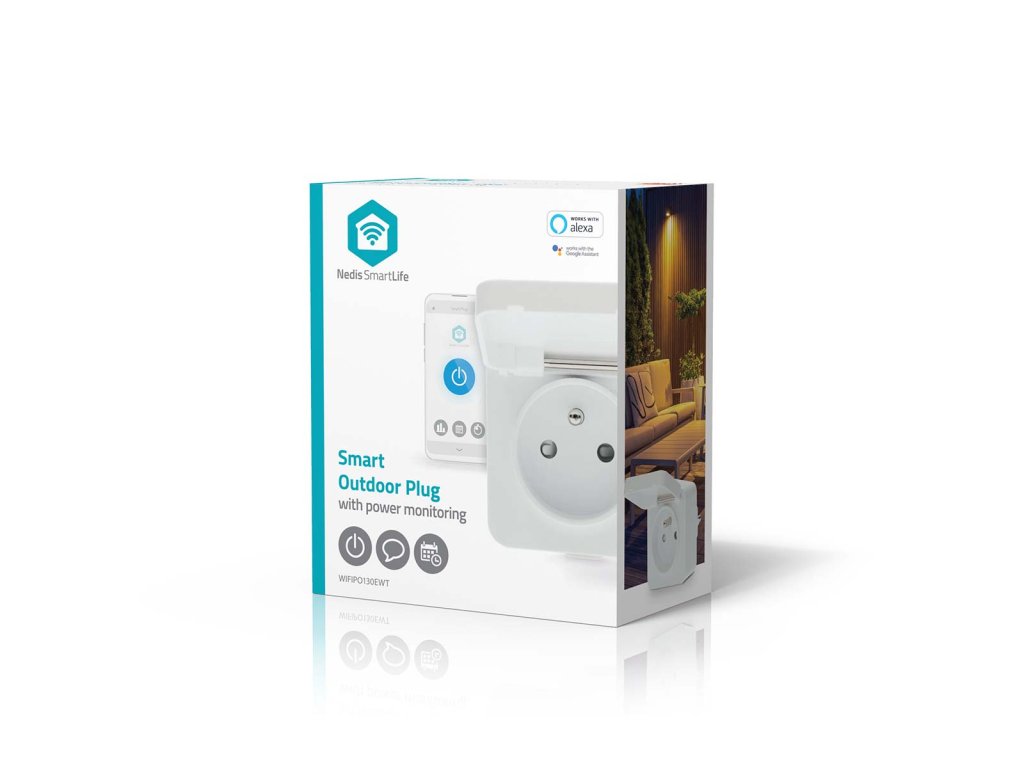 Nedis SmartLife chytrá venkovní zásuvka, monitor spotřeby, ochranný kolík, 16 A, IP44 (WIFIPO130EWT)