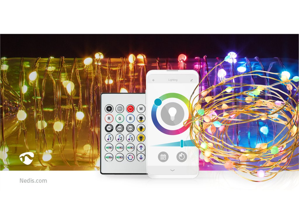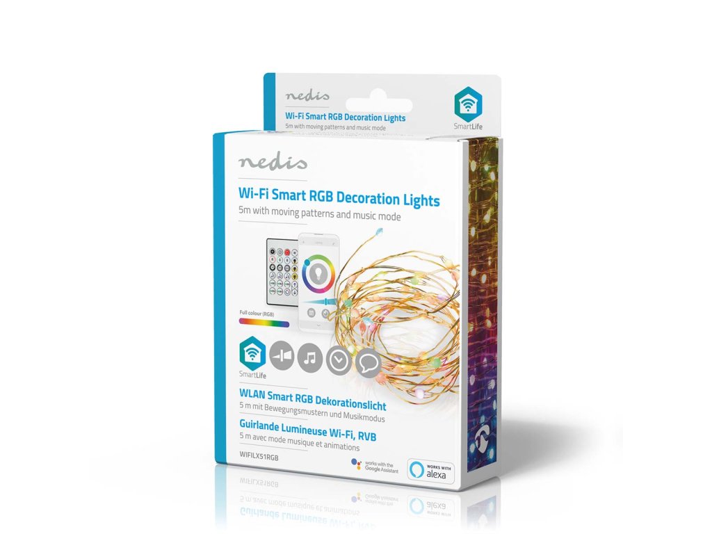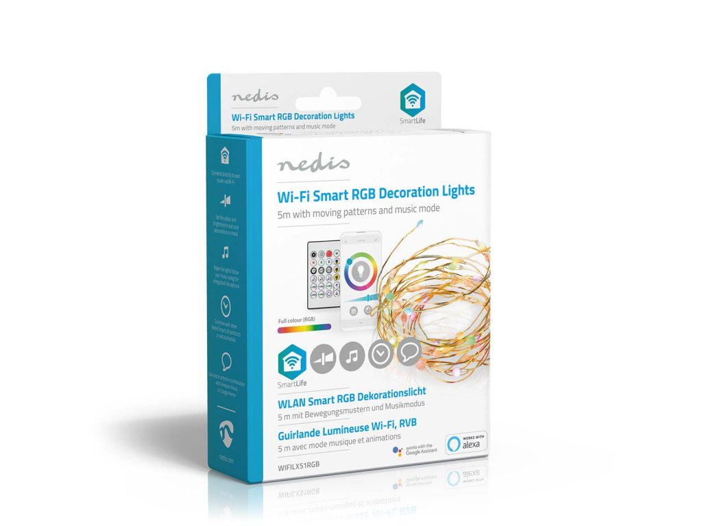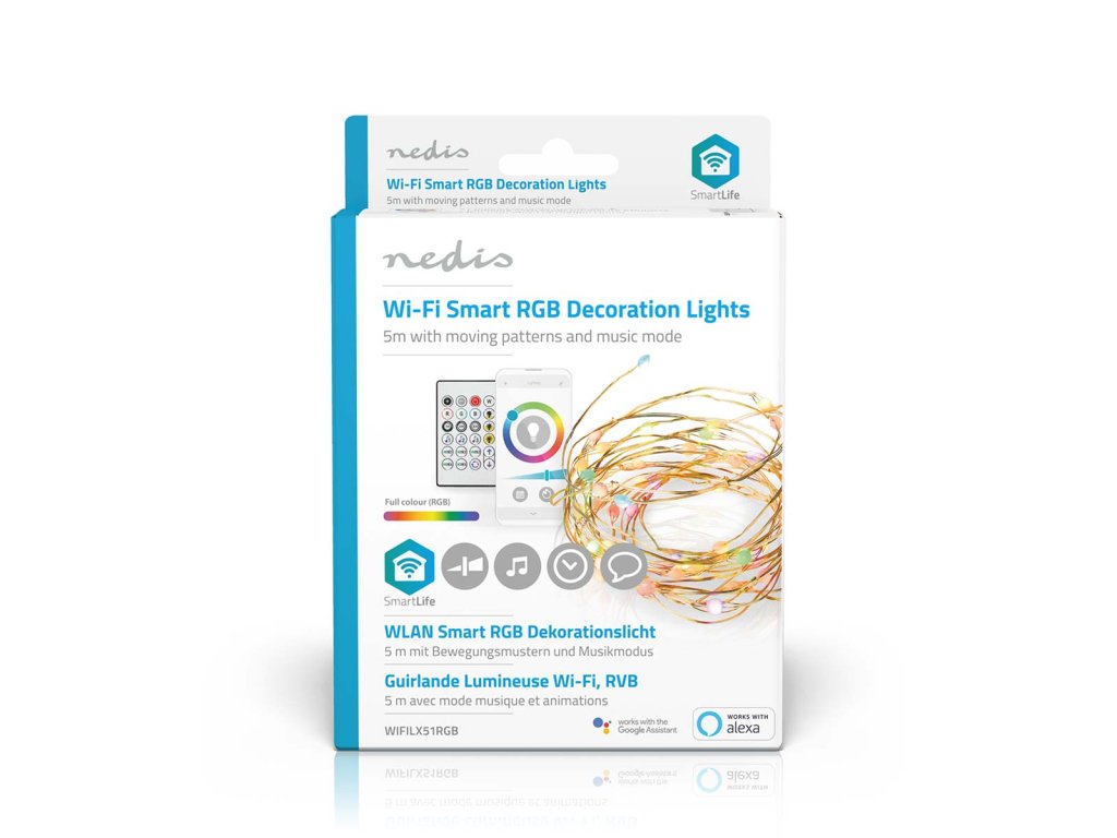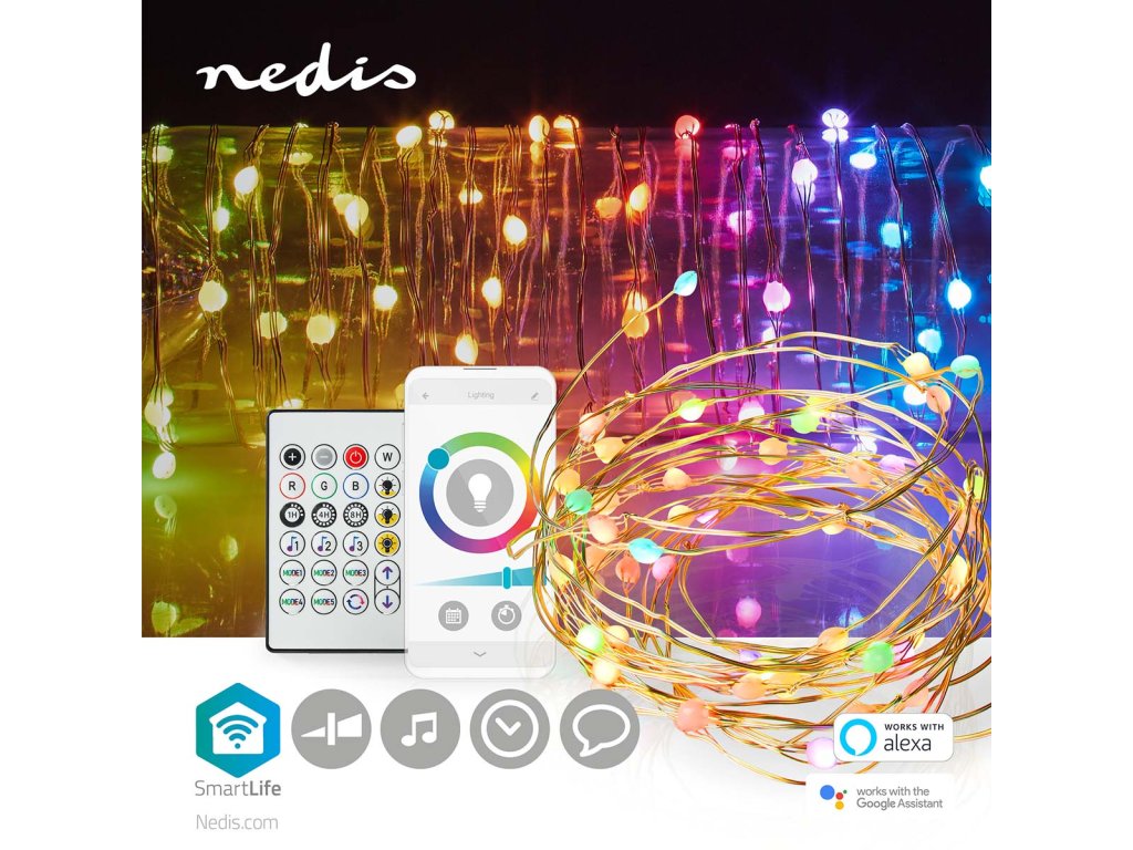 Tento řetěz se připojuje přímo k Vaší domácí síti Wi-Fi, nevyžaduje tedy žádné další připojení. Ovládejte světla pomocí bezplatné aplikace Nedis® SmartLife, nastavujte automatický režim podle časového rozvrhu, západu slunce nebo ostatních produktů Nedis® SmartLife. V kombinaci s asistenty Google Home nebo Amazon Alexa můžete dokonce používat hlasové příkazy ke změně barvy a jasu světla.