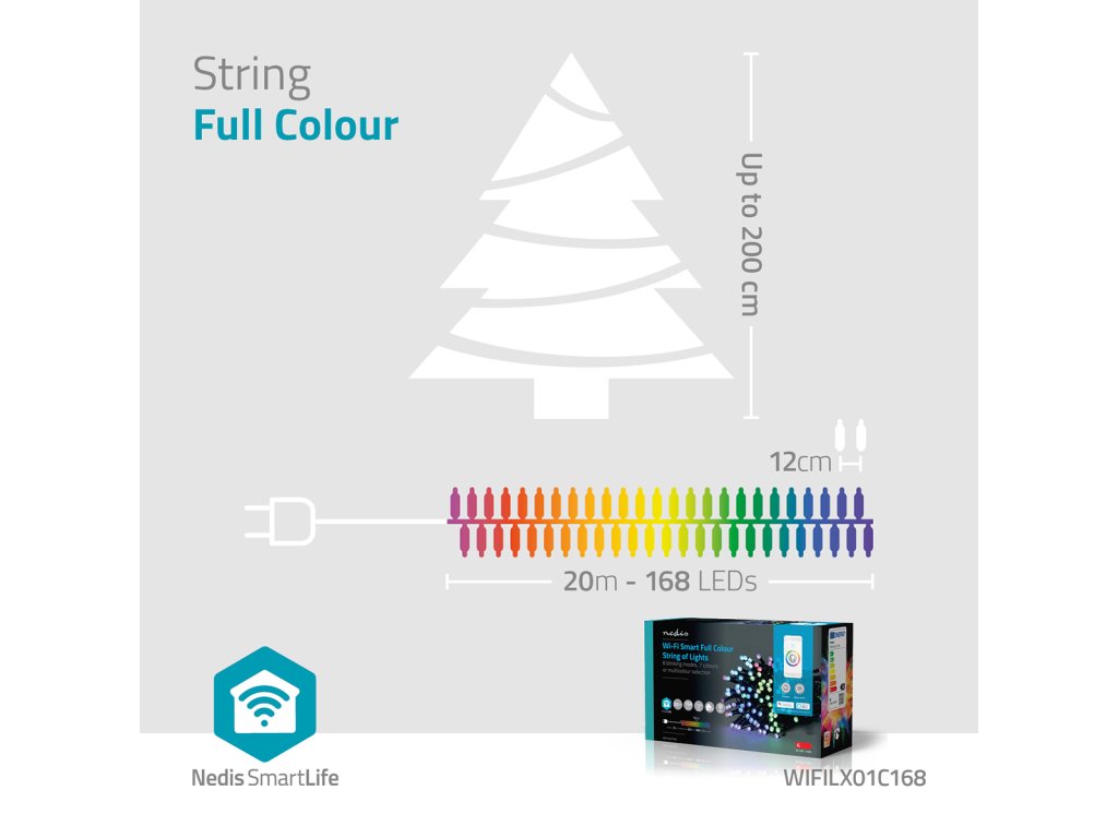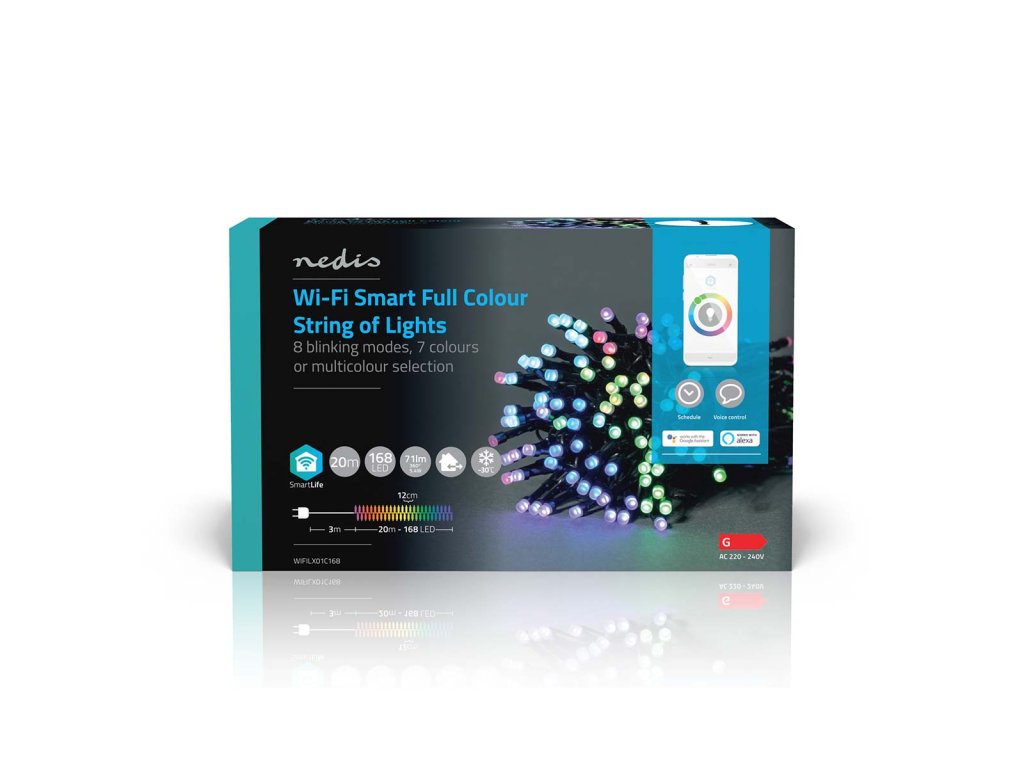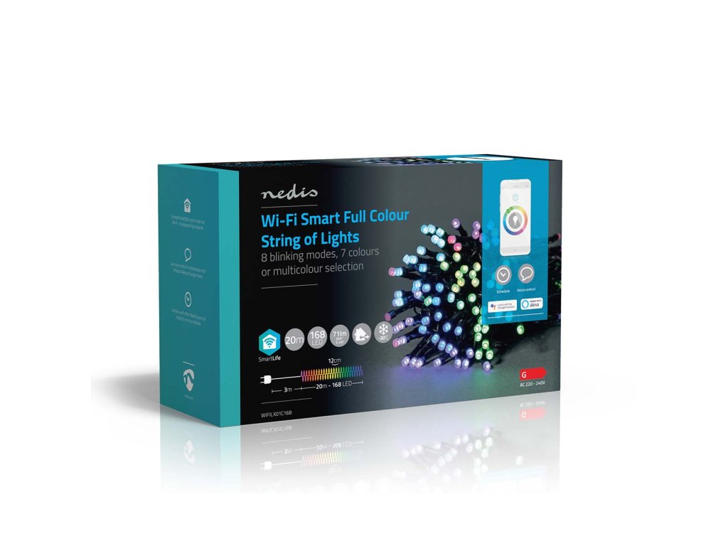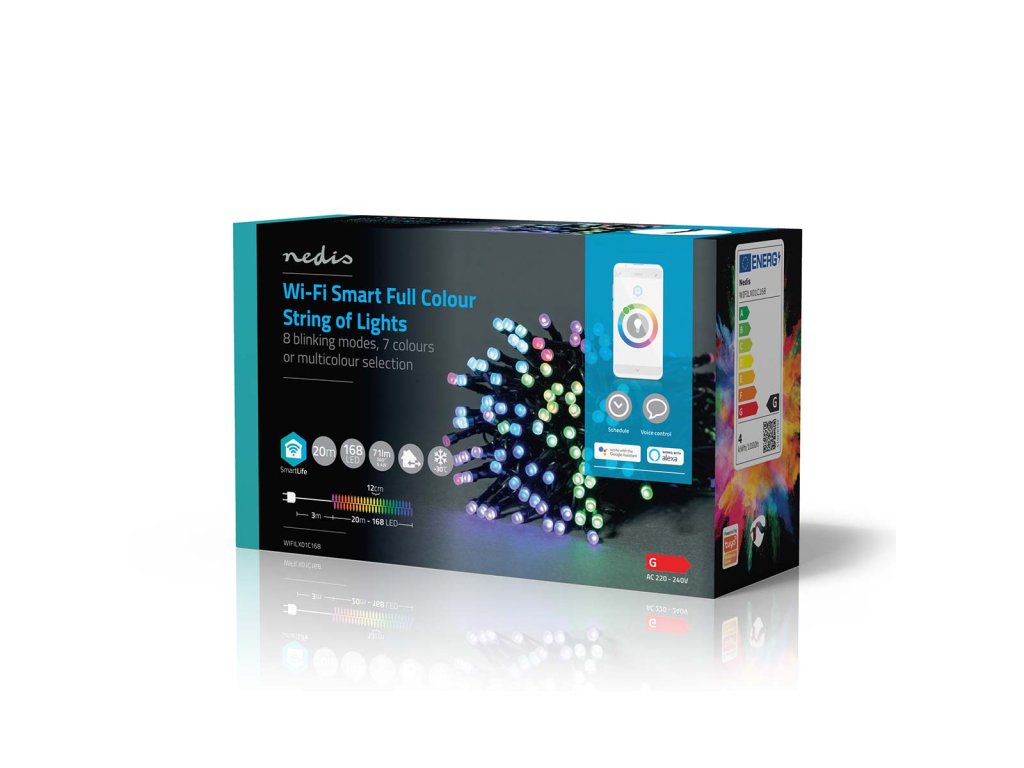 Nedis SmartLife chytrý vánoční řetěz, 168 LED, 20 m, venkovní IP65, barevný RGB (WIFILX01C168)