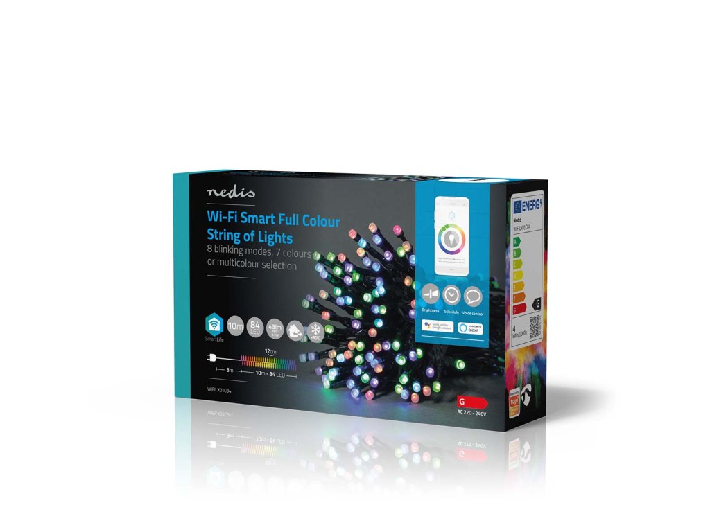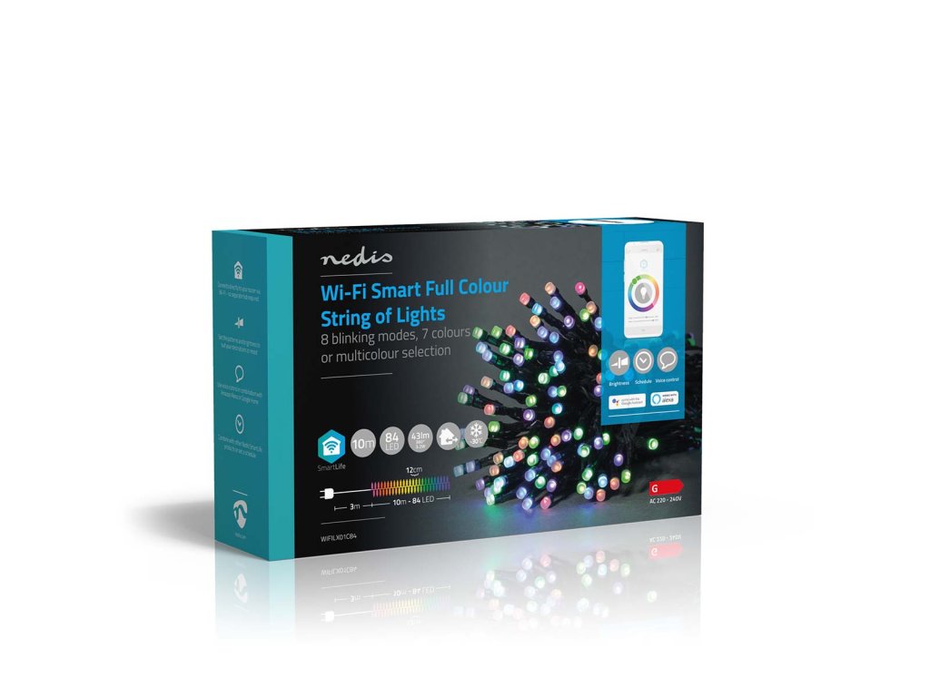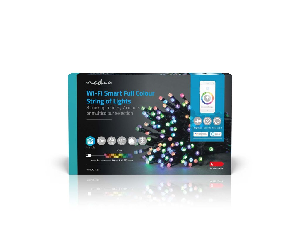Chytrý Wi-Fi světelný řetěz funguje i bez brány a stane se přímou součástí bezdrátové sítě – díky tomu není nastavení složité ani nákladné. Světelný řetěz můžete ovládat pomocí bezplatné aplikace Nedis SmartLife, která umožňuje nastavovat automatický režim podle časového rozvrhu, západu slunce nebo ostatních produktů Nedis SmartLife. V kombinaci s asistenty Google Home nebo Amazon Alexa můžete dokonce používat hlasové příkazy ke změně vzorů na světelném řetězu.