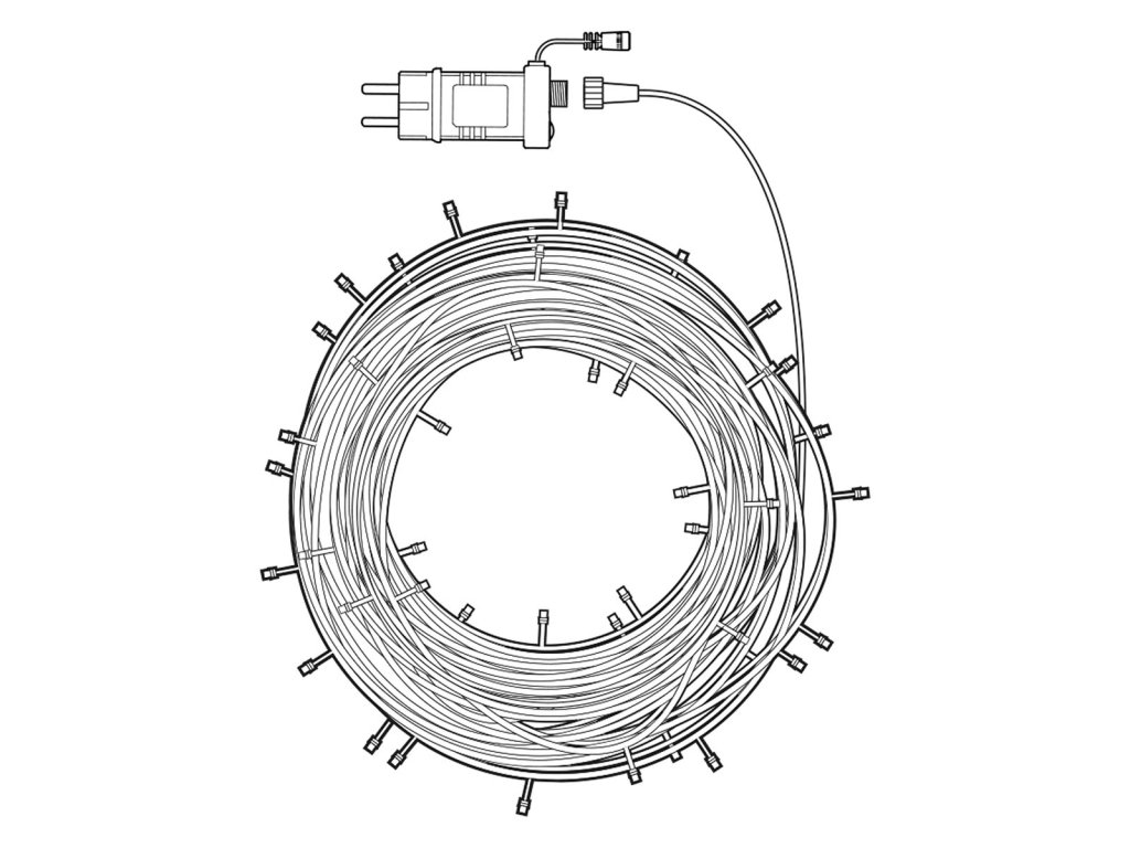 Černá barva kabelu se hodí ke každému pozadí a nijak nenarušuje výsledný vzhled. 10 metrový řetěz obsahuje celkem 84 LED diod s rozestupem 12 centimetrů od sebe. Díky napájecímu kabelu 3 metry se nemusíte bát, že napájecí kabel nedosáhne k zásuvce. To se velice hodí zejména tehdy, pokud máte zásuvku kousek dál. Řetěz je možné používat uvnitř i venku.