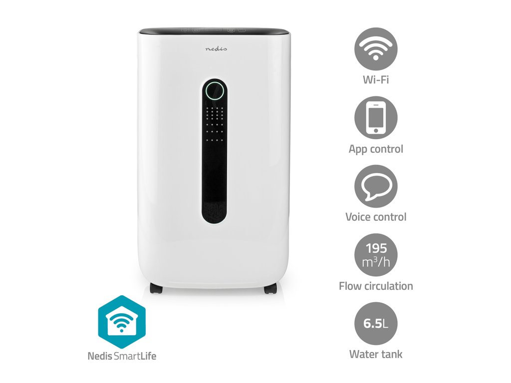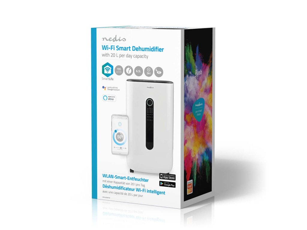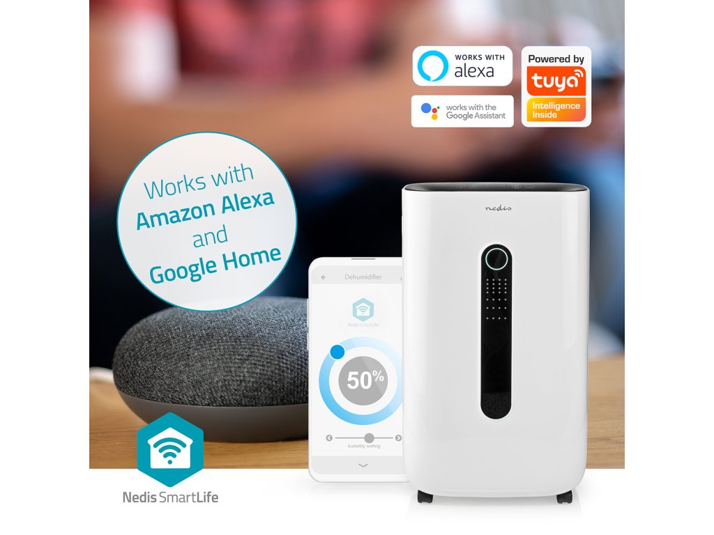 Jednoduše jej připojte k domácí síti Wi-Fi a ovládejte prostřednictvím aplikace Nedis® SmartLife (na iOS a Android) nebo tlačítek na samotném odvlhčovači. Podporuje také hlasové ovládání pomocí asistentů Alexa a Google Assistant.